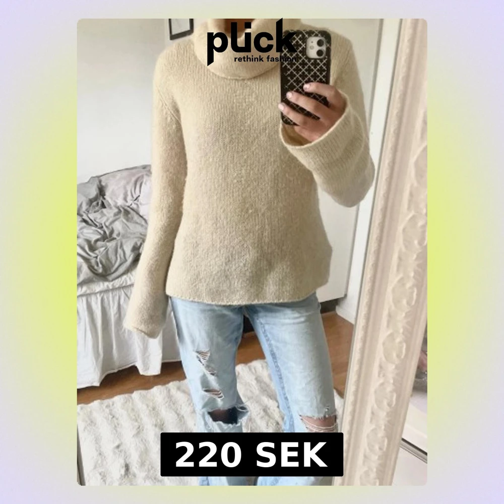 Mysig beige stickad polotröja med bred krage och långa, lite vidare ärmar. Tröjan har en rak passform och är gjord i ett mjukt, fluffigt material som känns skönt mot huden. Perfekt för kalla dagar och enkel att styla med jeans eller kjol. Den är cremevit (mellan beige o vit vit)