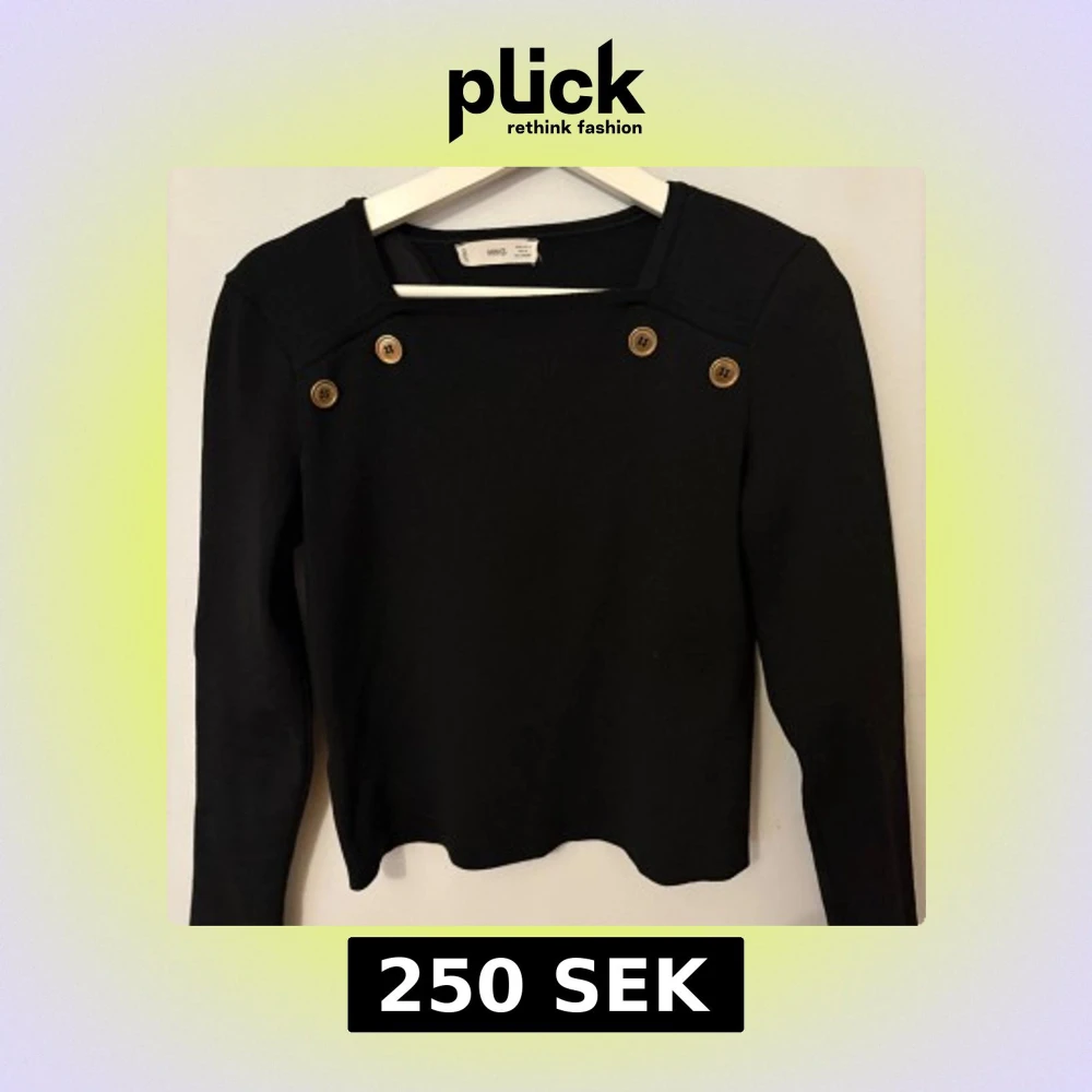 Snygg svart tröja från MNG med dekorativa knappar framtill. Tröjan har långa ärmar och en stilren design som passar perfekt till olika tillfällen. Knappast andvänd, Stl S/M.