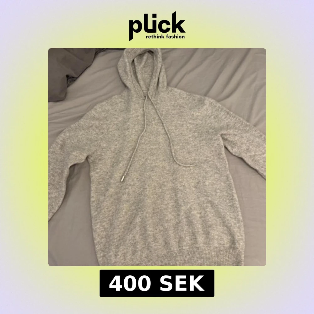 Säljer en stilren grå hoodie cashmere med justerbar huva och ribbade muddar. Perfekt för en avslappnad look. Passar bra till både jeans och träningsbyxor.