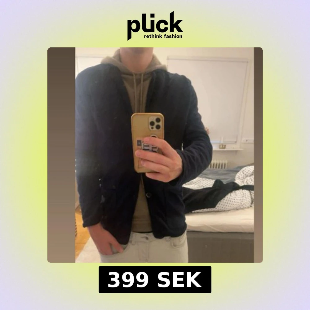 Säljer en stilren mörkblå ”tröj” kavaj. Klassisk design med smala slag och två framfickor. Perfekt för dig som vill ha en enkel och snygg kavaj till vardags eller mer uppklädda tillfällen. Skicket är 8/10 och storleken är M.