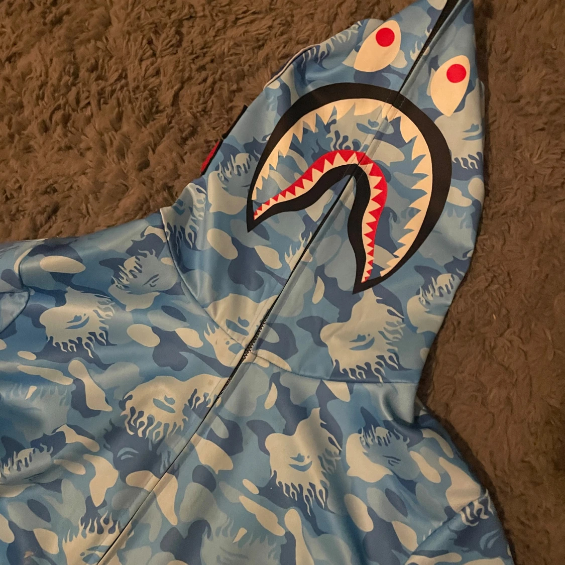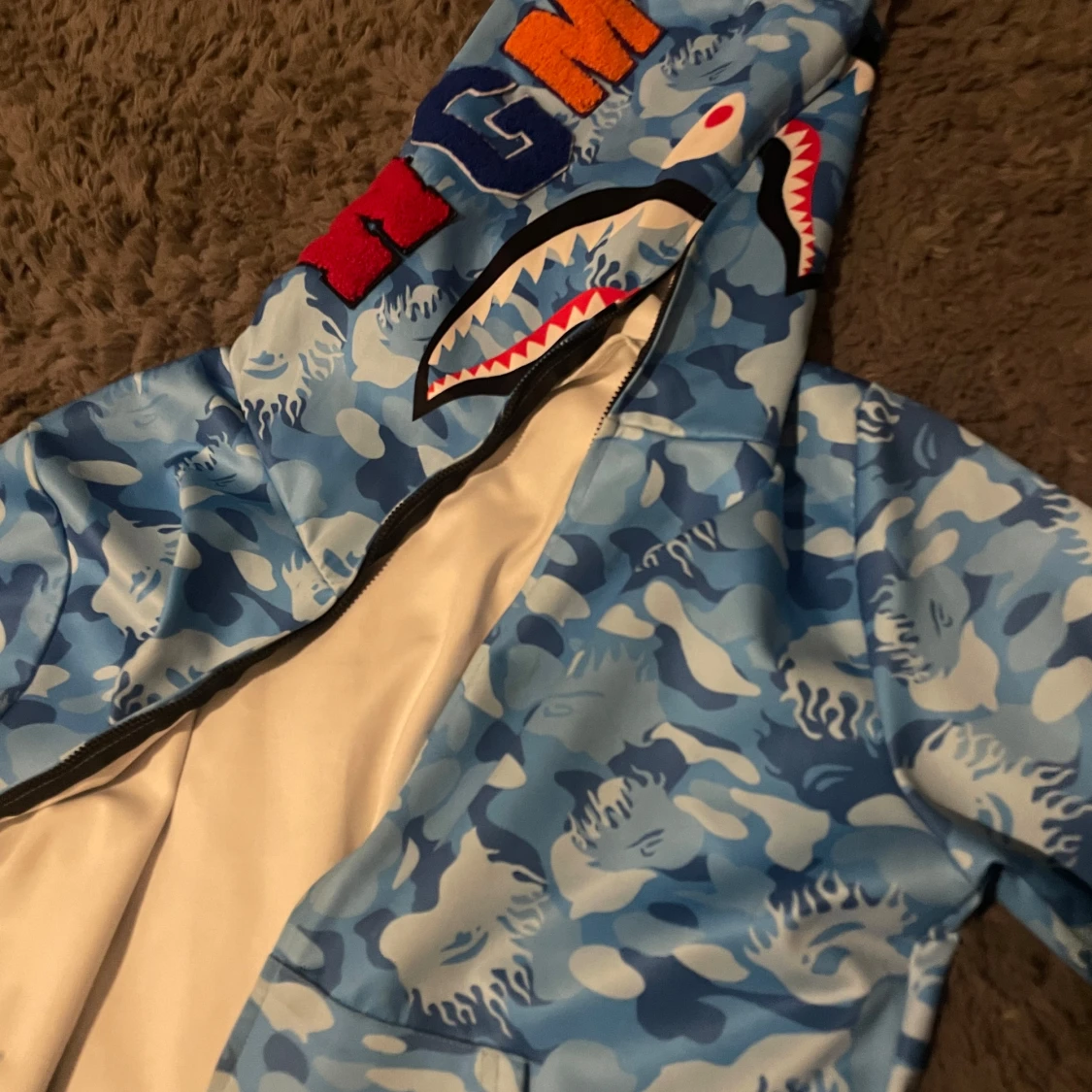 Blå zip hela vägen hoodie, använd och har några fläckar vid dragkedjan men inget som syns så tydligt. Storlek M men passar perfekt för S.