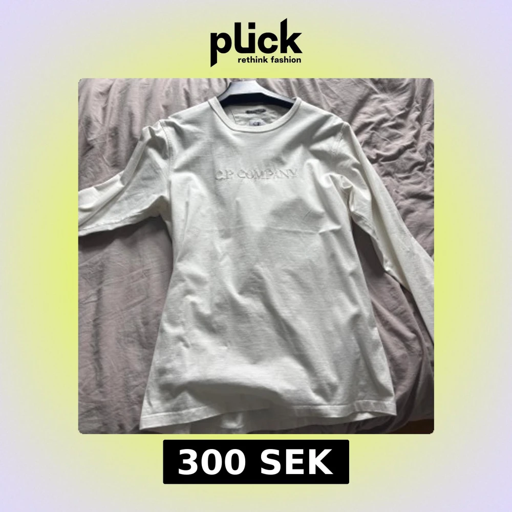 Säljer en stilren vit långärmad tröja från C.P. Company med broderad logga på bröstet. Tröjan har en klassisk rund hals och är gjord i mjuk bomull som känns skön mot huden. Perfekt för dig som gillar minimalistisk design och snygga detaljer.