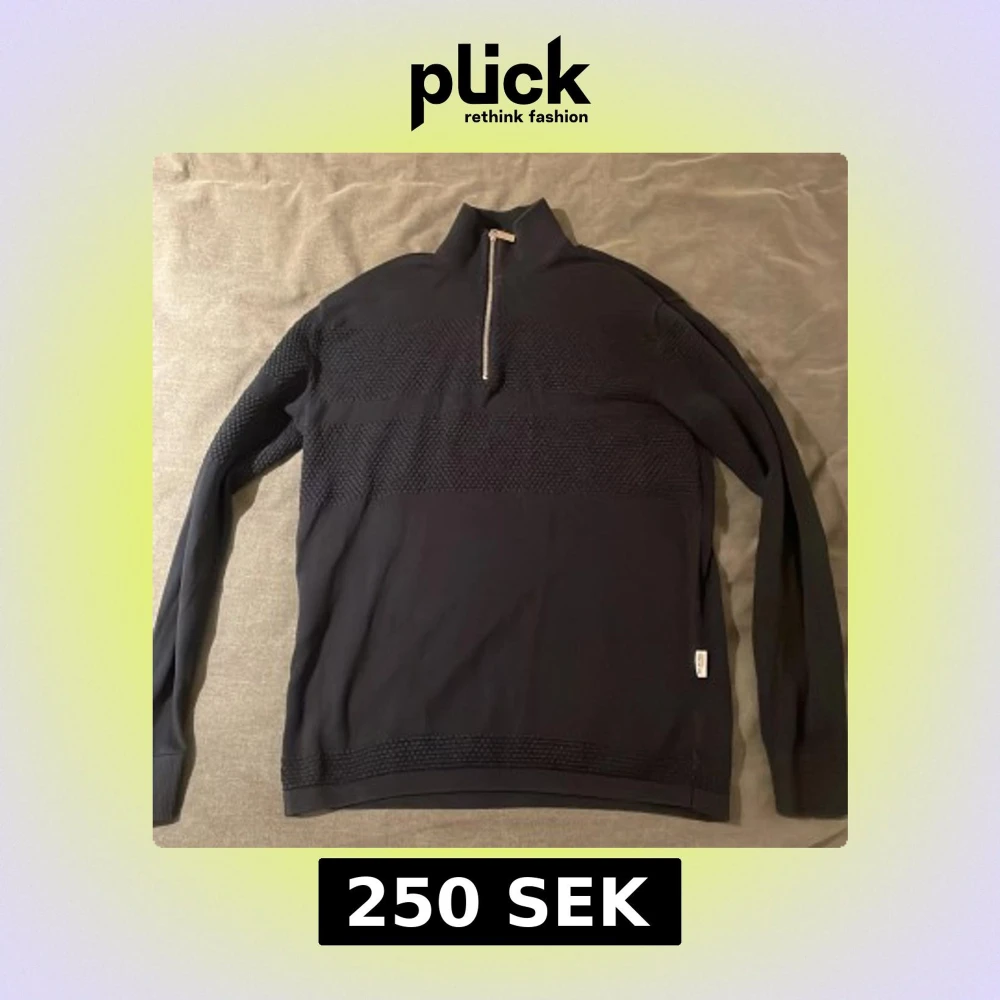 Snygg mörkblå tröja från Selected Homme med halv dragkedja och ribbade detaljer. Perfekt för en stilren look med långärmad design och texturerat mönster över bröstet. Kan gå ner i pris vid snabb affär!!