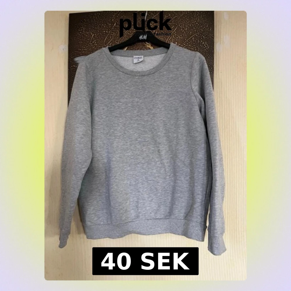 Enkel och stilren grå sweatshirt från Stories i storlek M. Tröjan har rund halsringning, ribbade muddar vid ärmslut och nederkant samt är tillverkad i mjuk bomullsblandning. Perfekt för chill dagar eller när du vill ha en clean look.