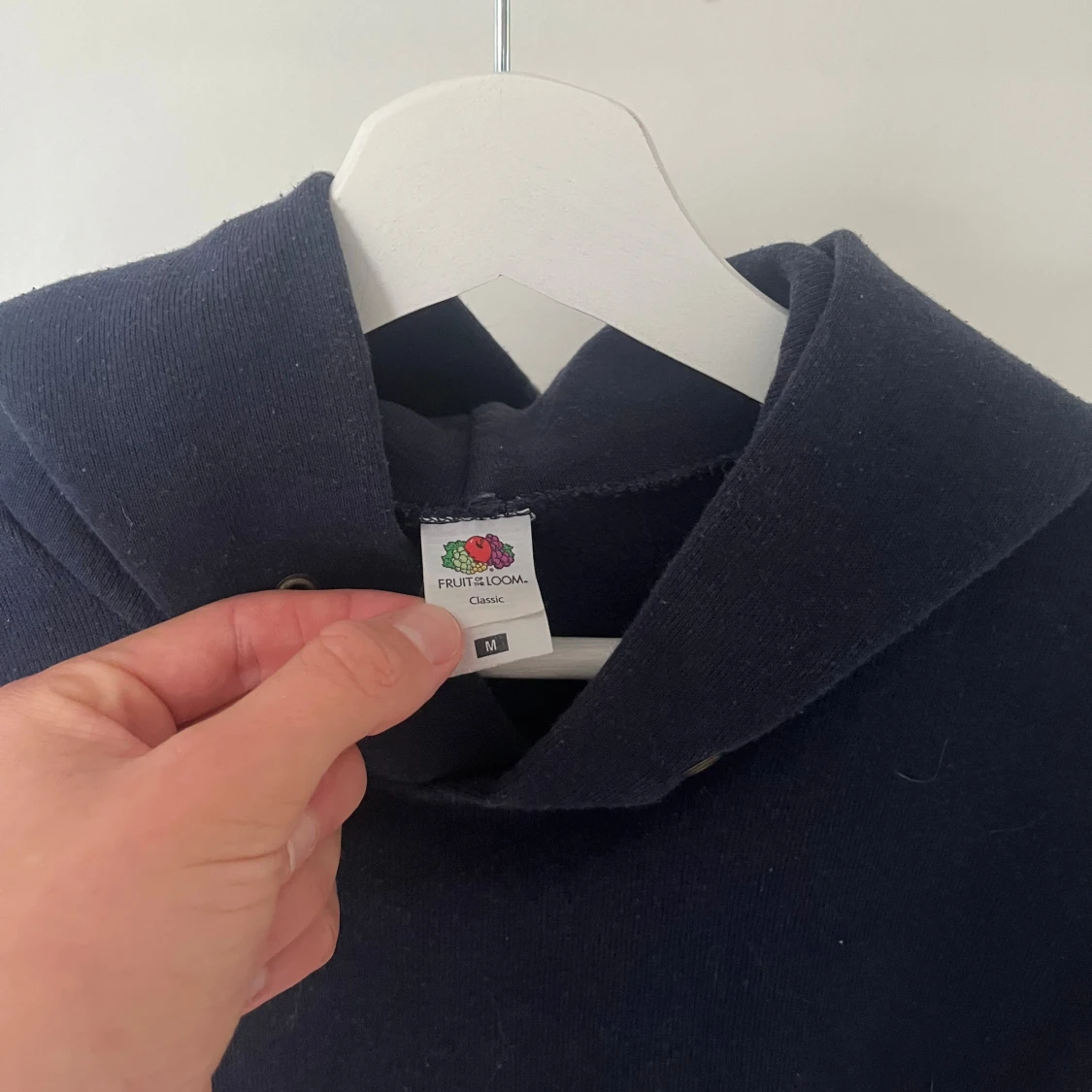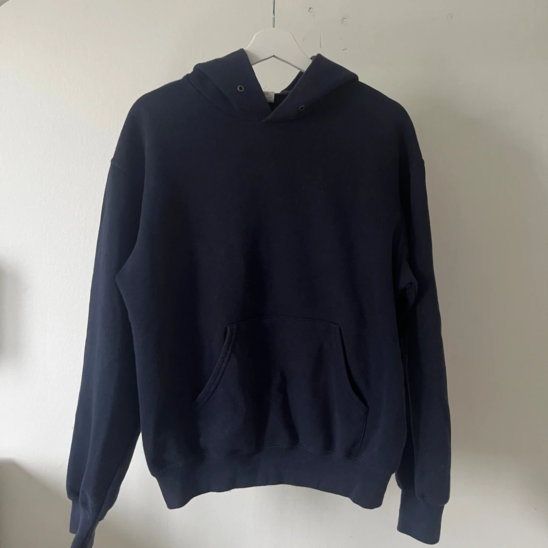 Snygg stilren marinblå hoodie. Storlek M men passar S!