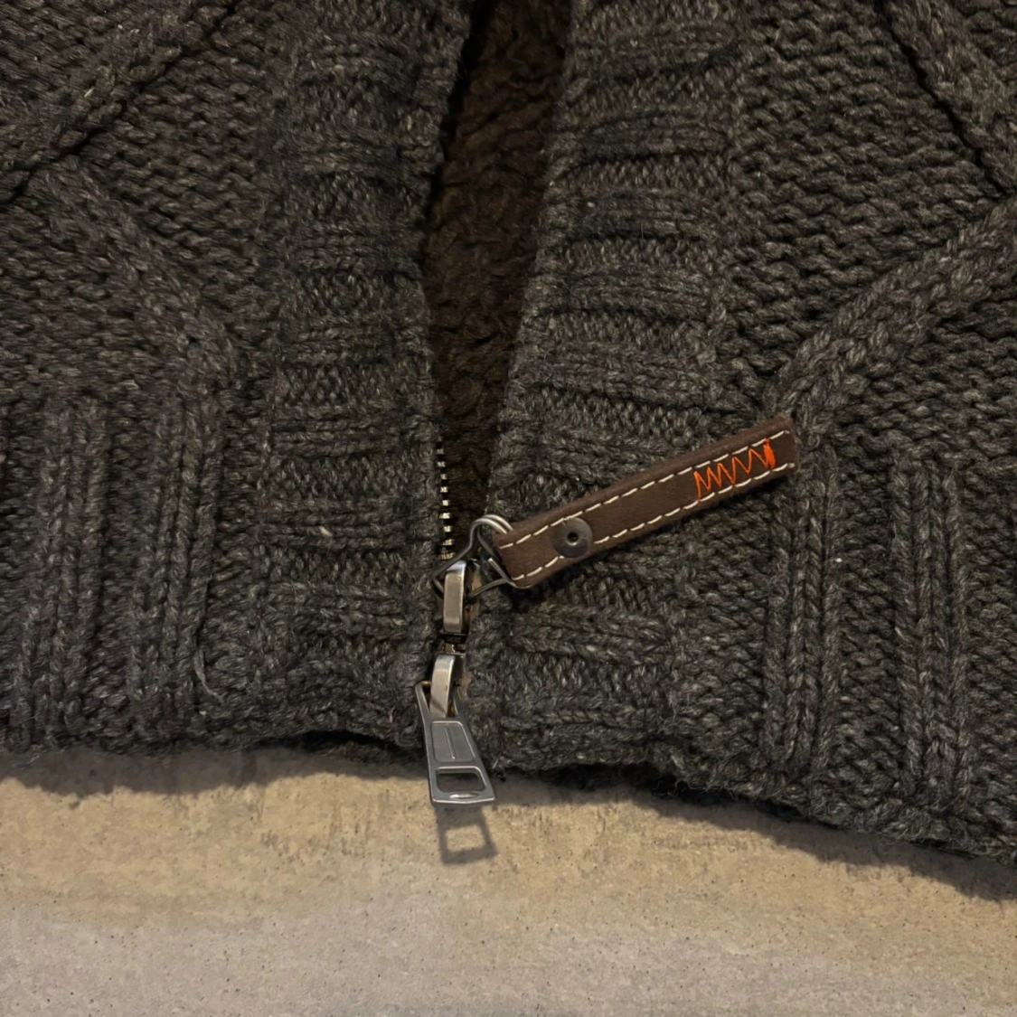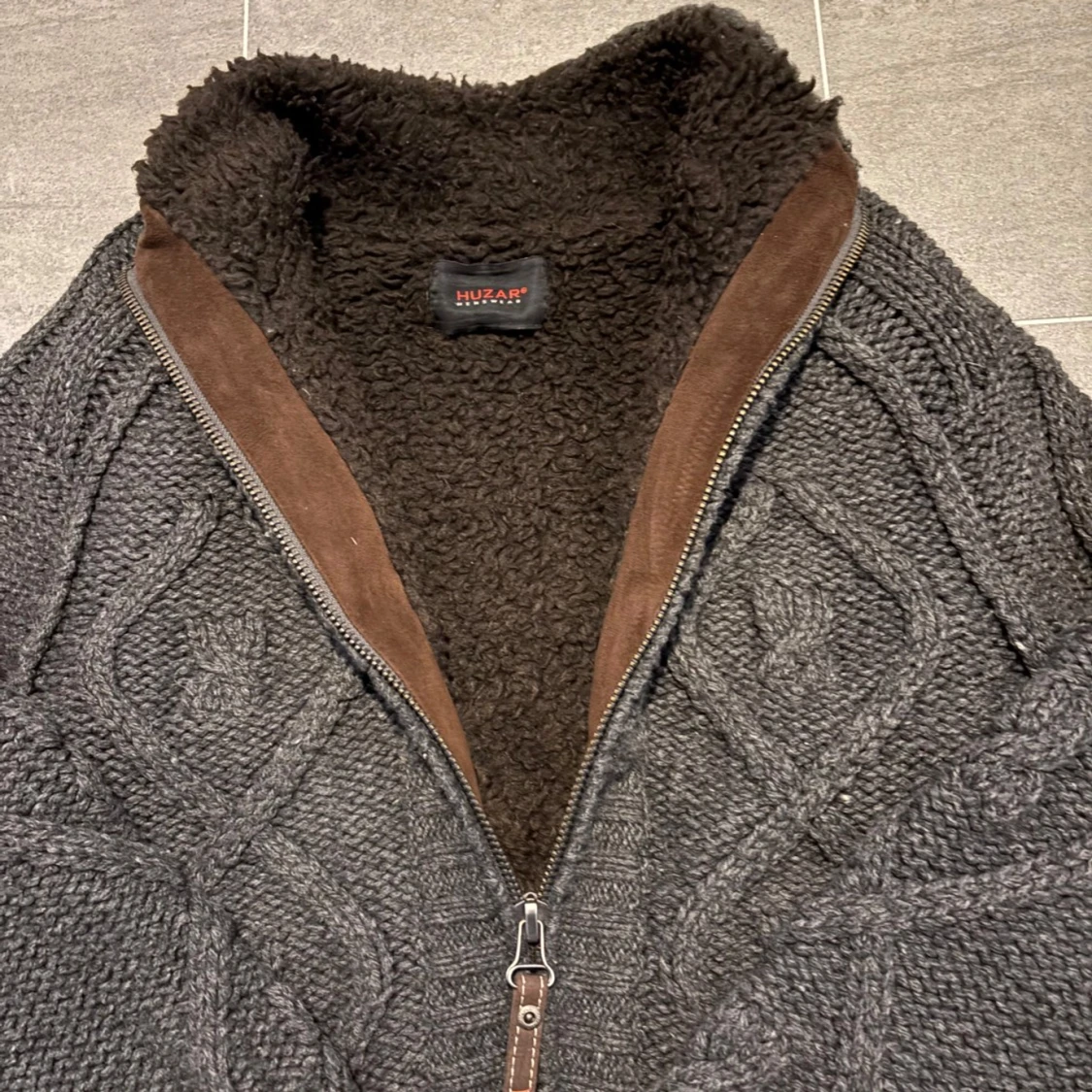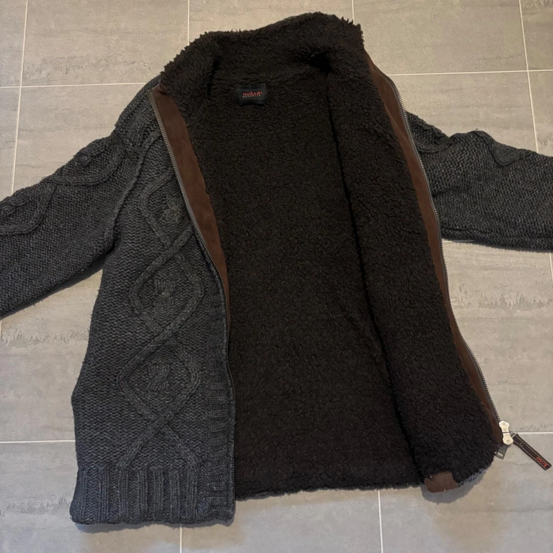 En riktigt snygg kabelstickad cardigan som är fodrad. Den är varm och tjock så passar som en jacka. Tyvärr för stor för mig. Priset kan diskuteras.