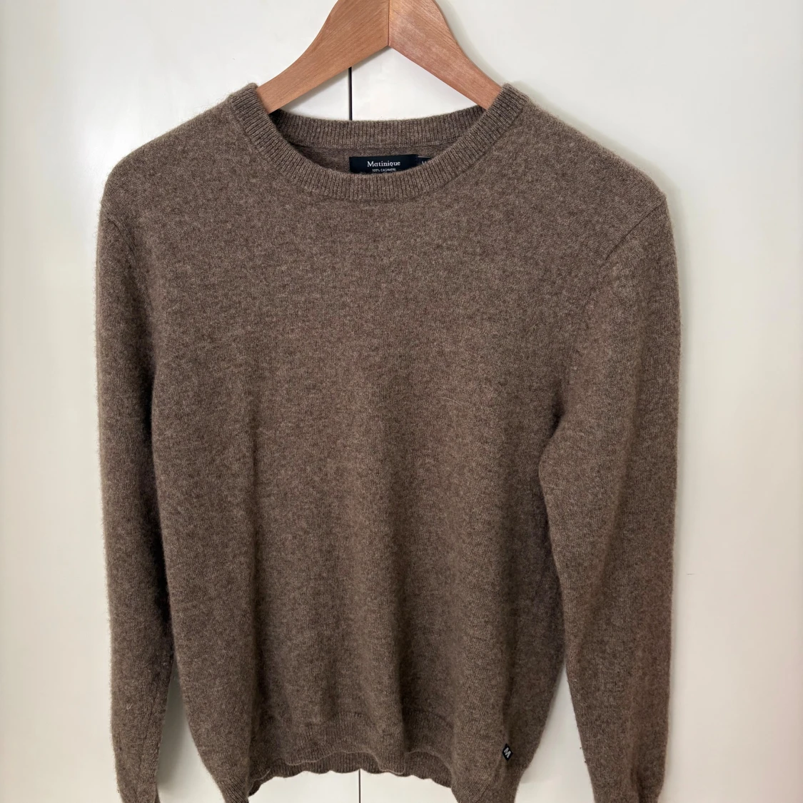 Mjuk och lyxig brun kashmirtröja från Matinique. Klassisk rund halsringning och långa ärmar. Perfekt för dig som gillar en stilren och enkel look med premiumkänsla. Snygg att matcha med jeans eller chinos.