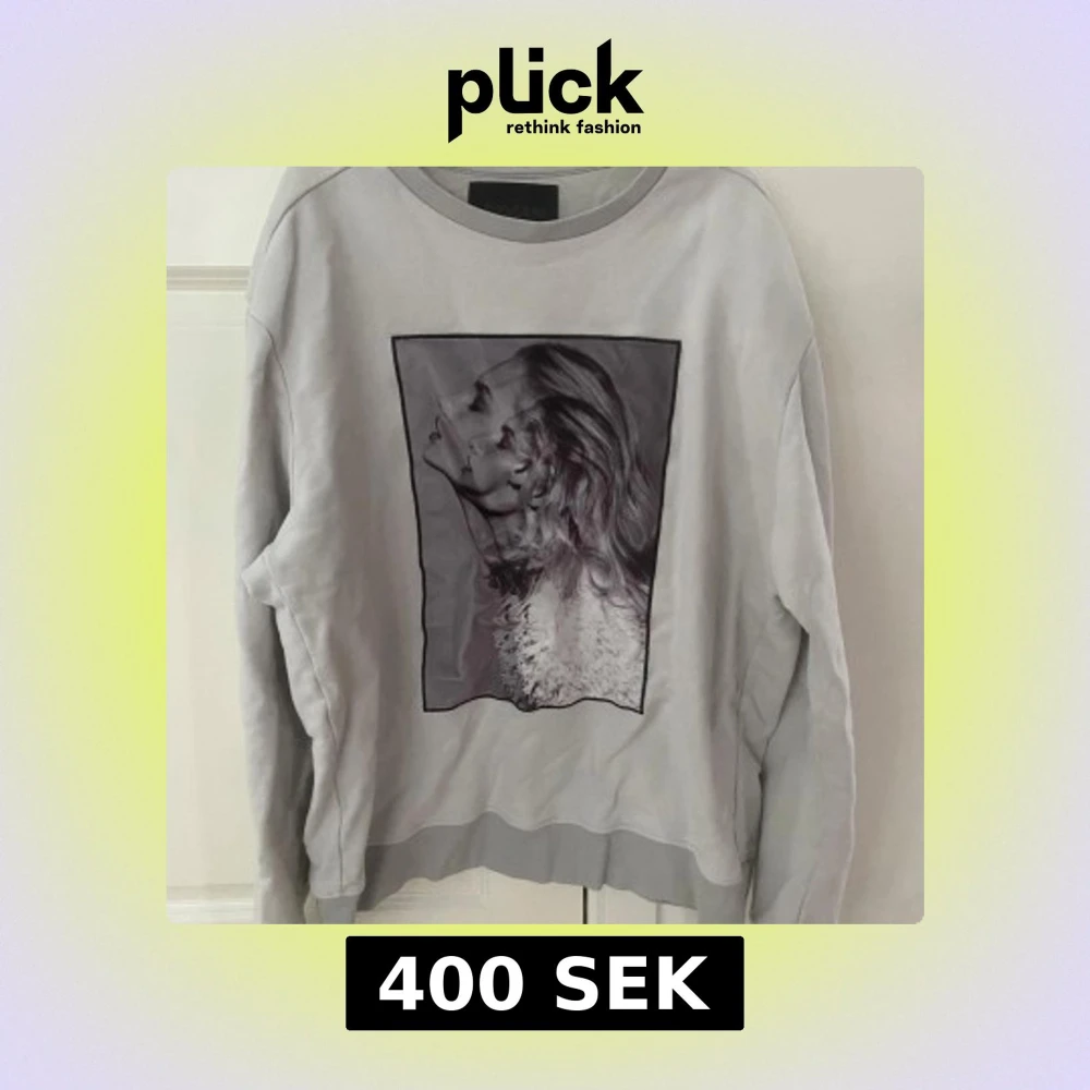 Säljer en grå sweatshirt från Limitato x Riocam med ett stort svartvitt fotoprint framtill. Tröjan har rund halsringning, långa ärmar och ribbade muddar. Limitato-logga broderad på ryggen. Perfekt för dig som gillar unika prints och streetstyle.