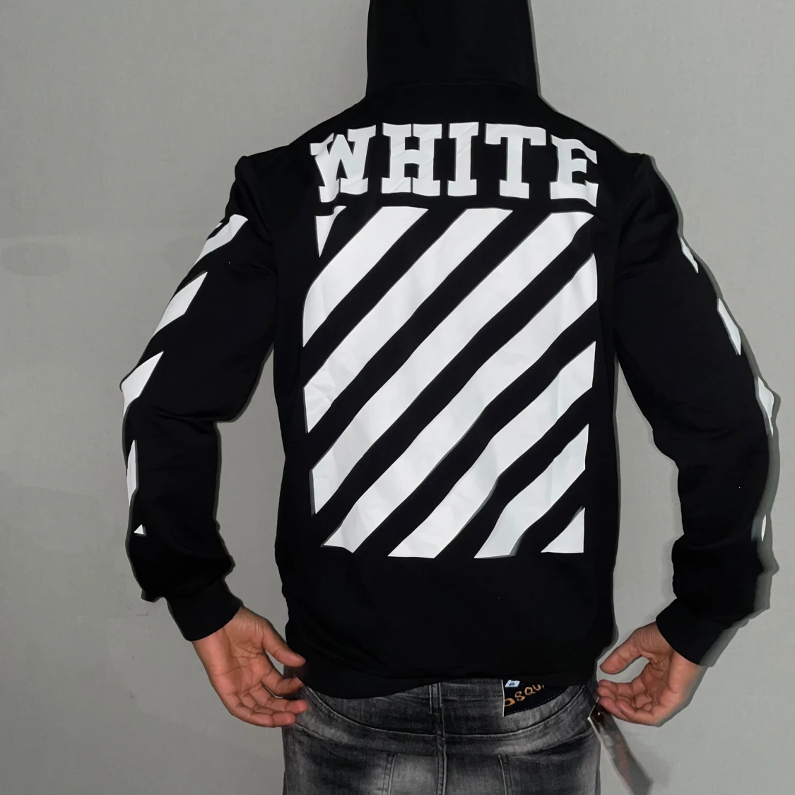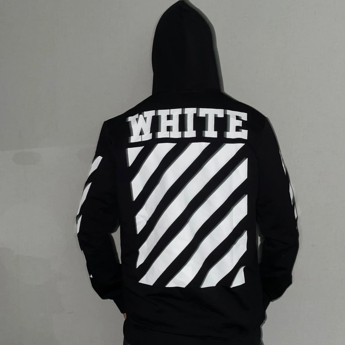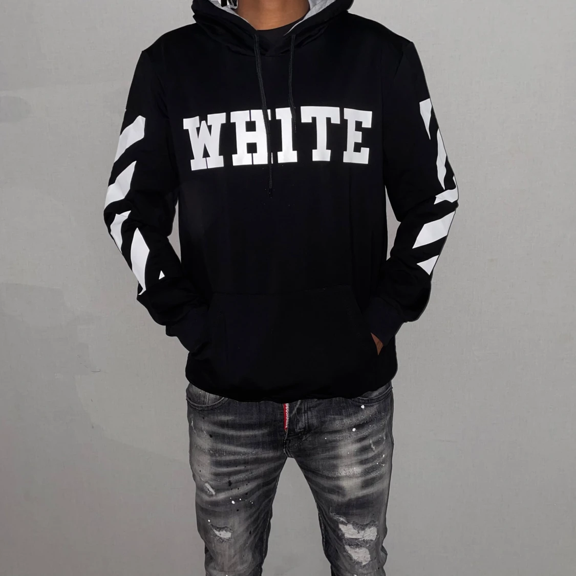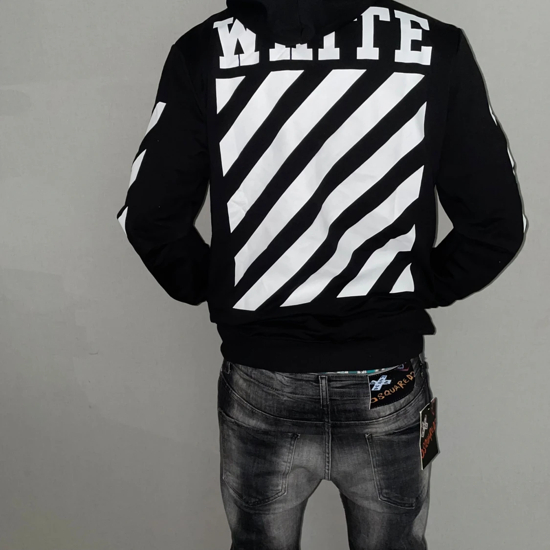 En off white hoodie i storlek M. Helt ny. Fin replika med grym kvalitet. Pris: 799kr skickas direkt inom 24h