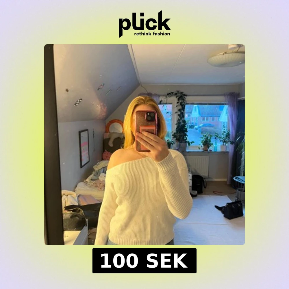 Säljer en stilren vit offshoulder tröja med ribbade detaljer. Perfekt för en trendig look. Tröjan har långa ärmar och är gjord i ett mjukt material som ger en bekväm passform. Storlek M