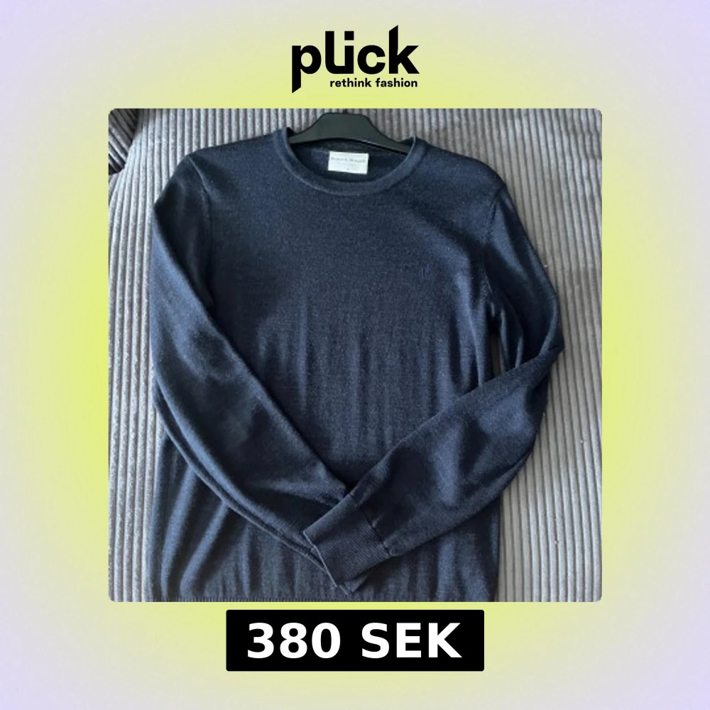 Snygg mörkblå stickad tröja från Bruun & Stengade. Klassisk rund halsringning och långa ärmar. Tröjan är tunnstickad och passar perfekt till lager-på-lager-stil. Enkel och stilren design med diskret logga på bröstet. Nypris/köpt: 800kr