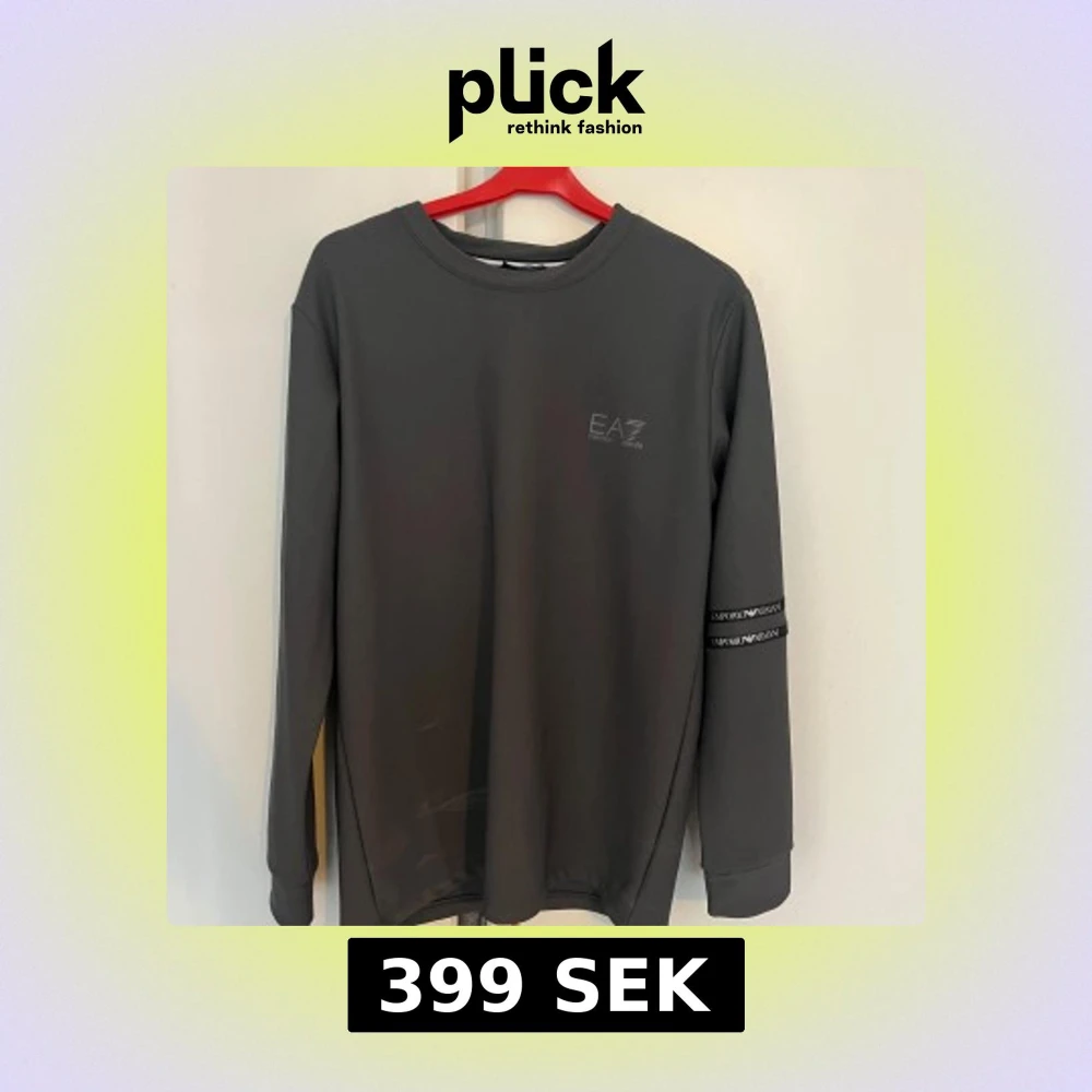 Snygg grå långärmad tröja från EA7 Emporio Armani med rund halsringning. Diskret logga på bröstet och två svarta band med Emporio Armani-tryck runt ena ärmen. Perfekt för en stilren och sportig look.