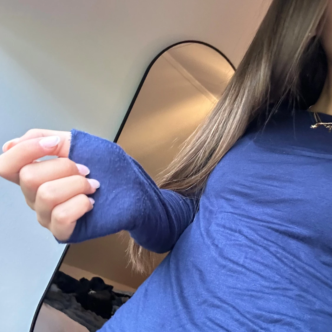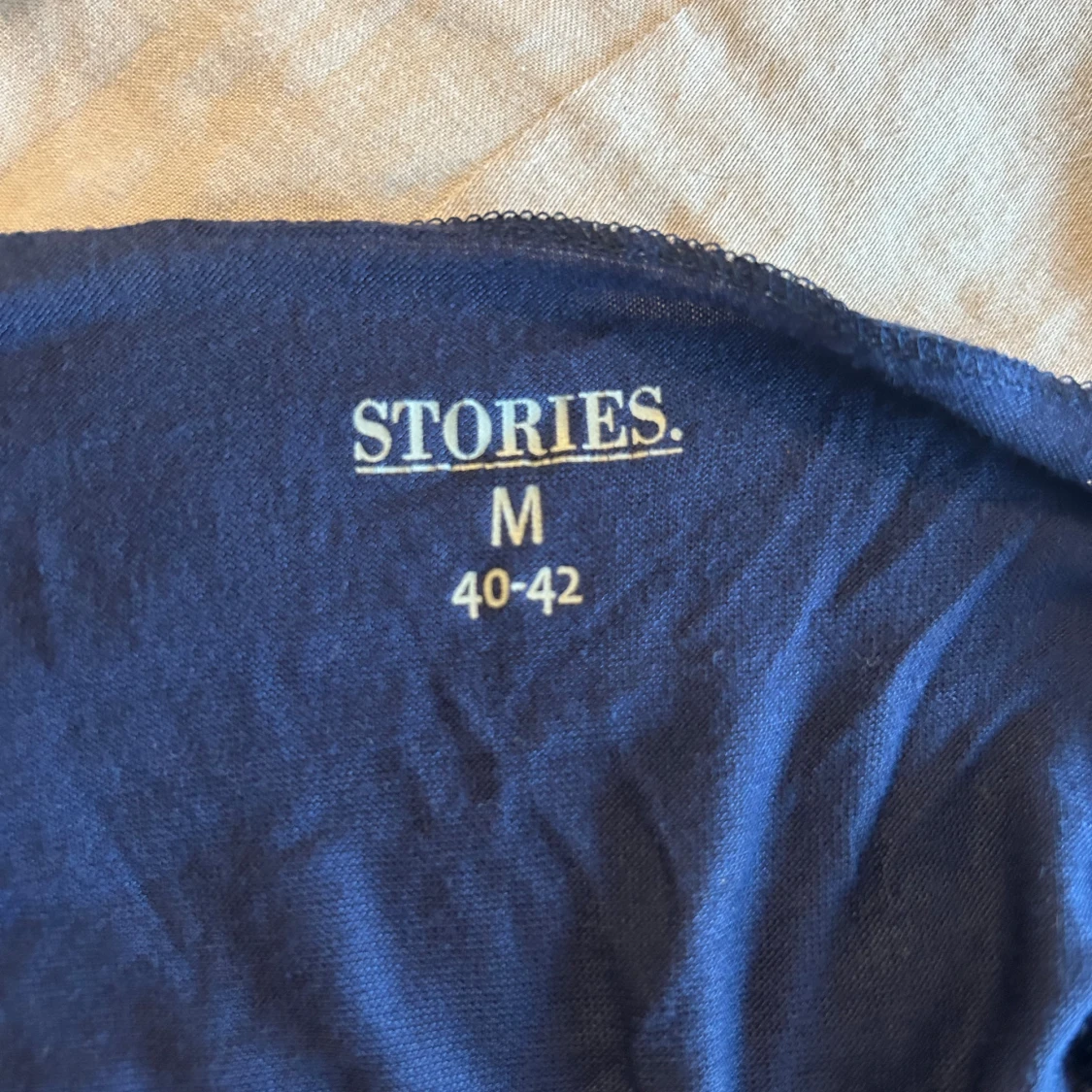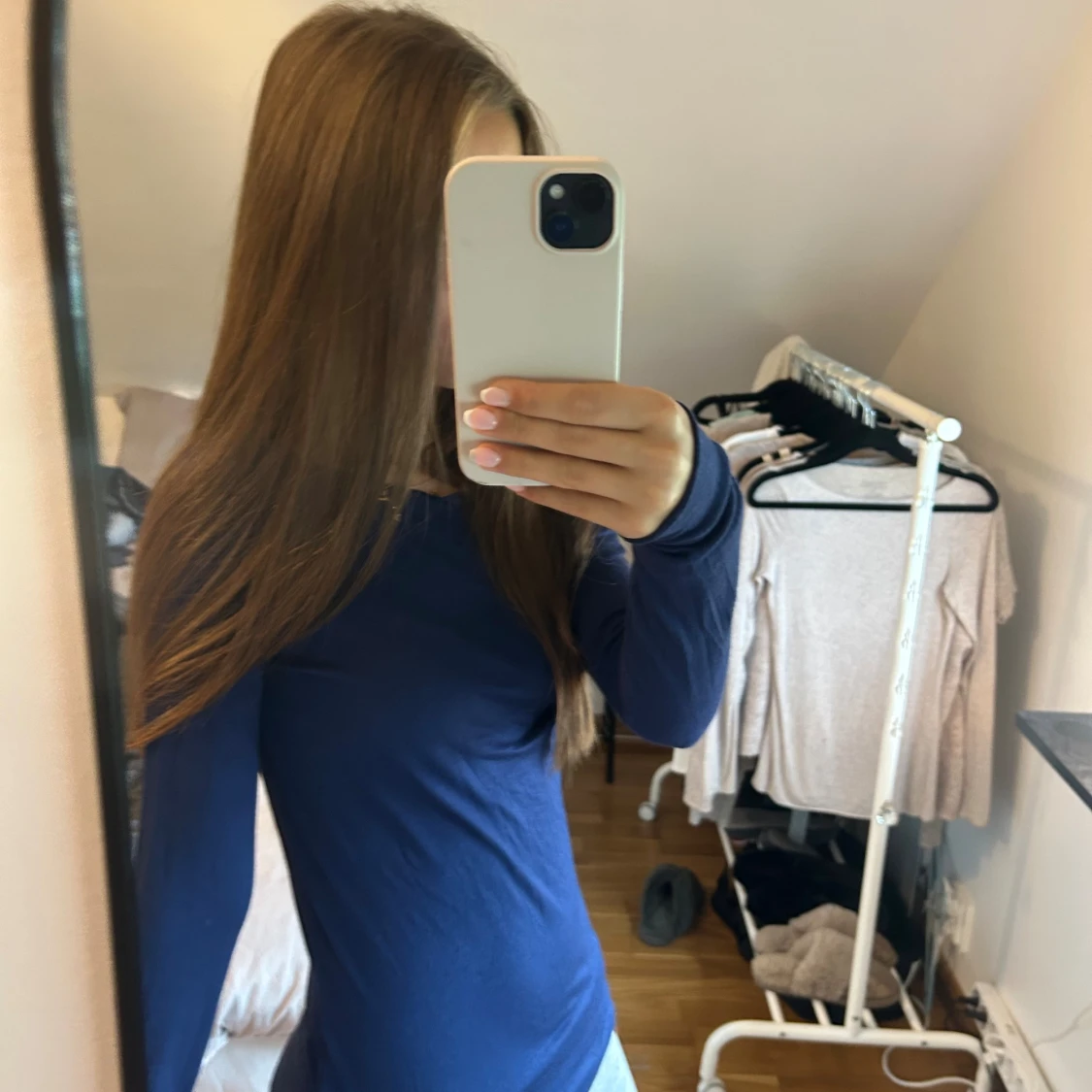 Säljer en mörkblå långärmad tröja från Stories i storlek M. Tröjan har en slim passform och är tillverkad i mjukt, tunt material som känns skönt mot huden. Perfekt att styla med jeans eller kjol för en clean look.
