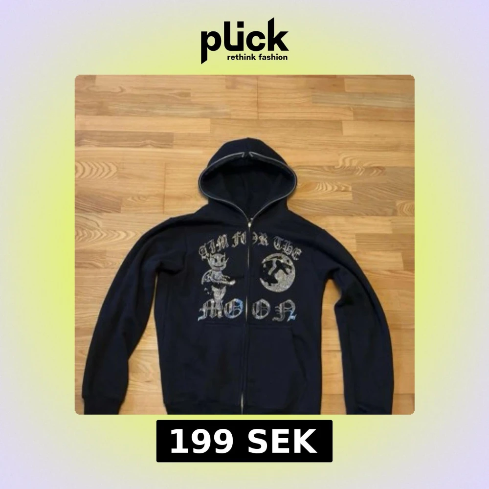 Snygg svart hoodie Från Aim for the Moon säljer för 200kr helt ny utan prislapp använd 1 gång!!