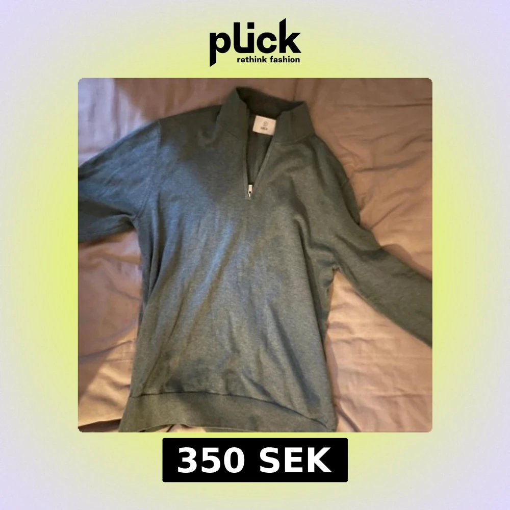 Säljer en stilren grå tröja från Bläck med halv dragkedja och hög krage. Perfekt för en avslappnad look. Tröjan har långa ärmar och ribbade muddar vid ärmslut och nederkant.