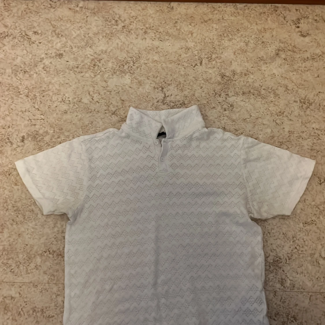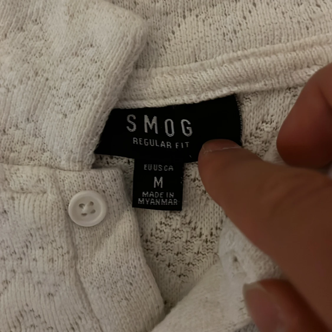 Säljer en stilren vit pikétröja från Smog i storlek M. Tröjan har ett diskret mönster och korta ärmar, perfekt för en avslappnad look. Tillverkad i ett bekvämt material som passar bra till vardags.