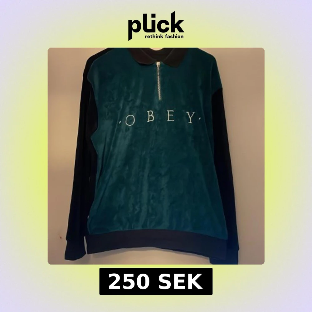 Tjena säljer en snygg grön och svart tröja från Obey med dragkedja och broderad logga på framsidan. Baksidan är hel svart, inte använts super mycket men haft den ett tag. Skön o go tröja dock. Äre några frågor oså så är de bara att skriva!