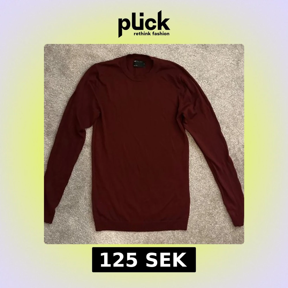 Säljer en vinröd tröja från ASOS DESIGN i storlek M. Tröjan har rund halsringning och långa ärmar,