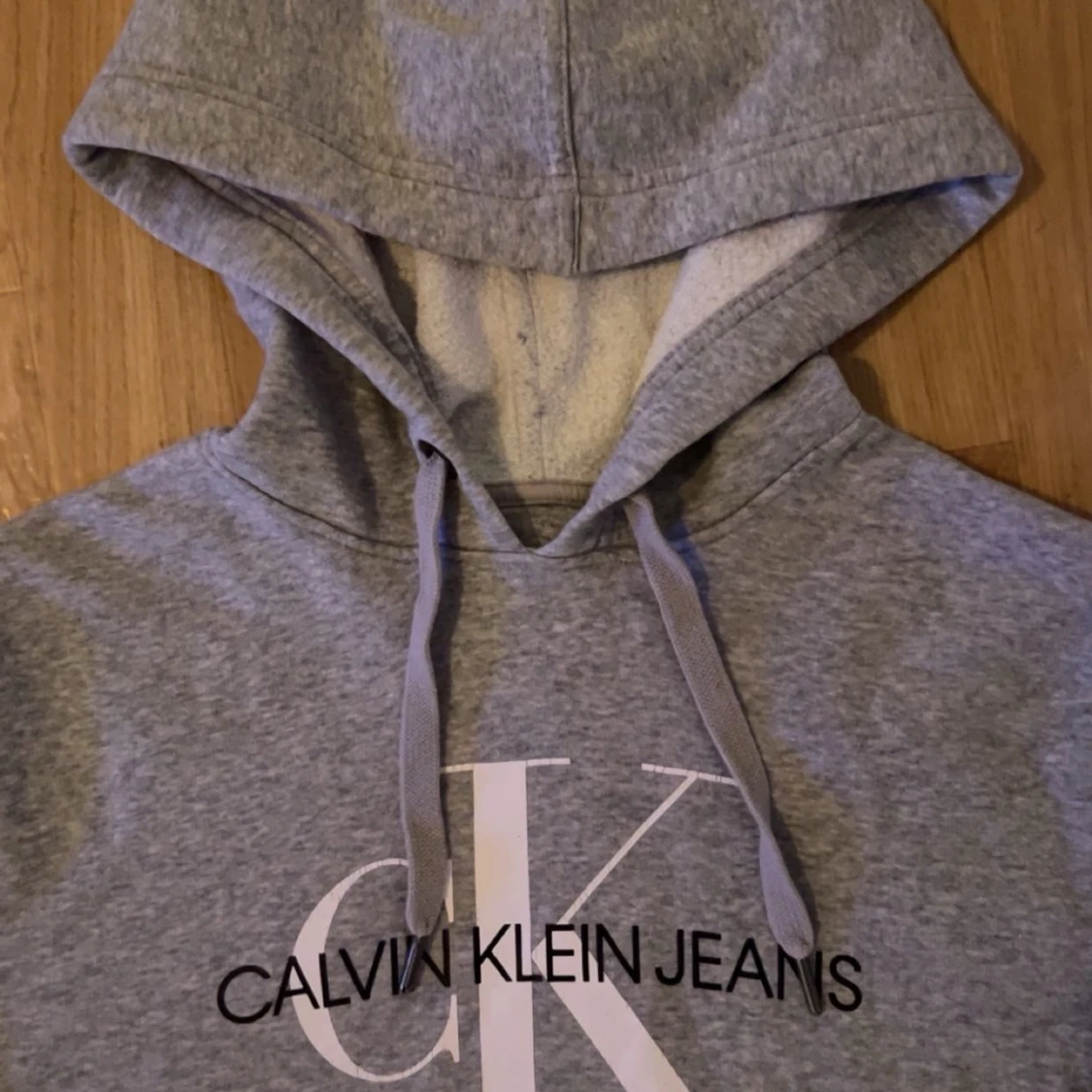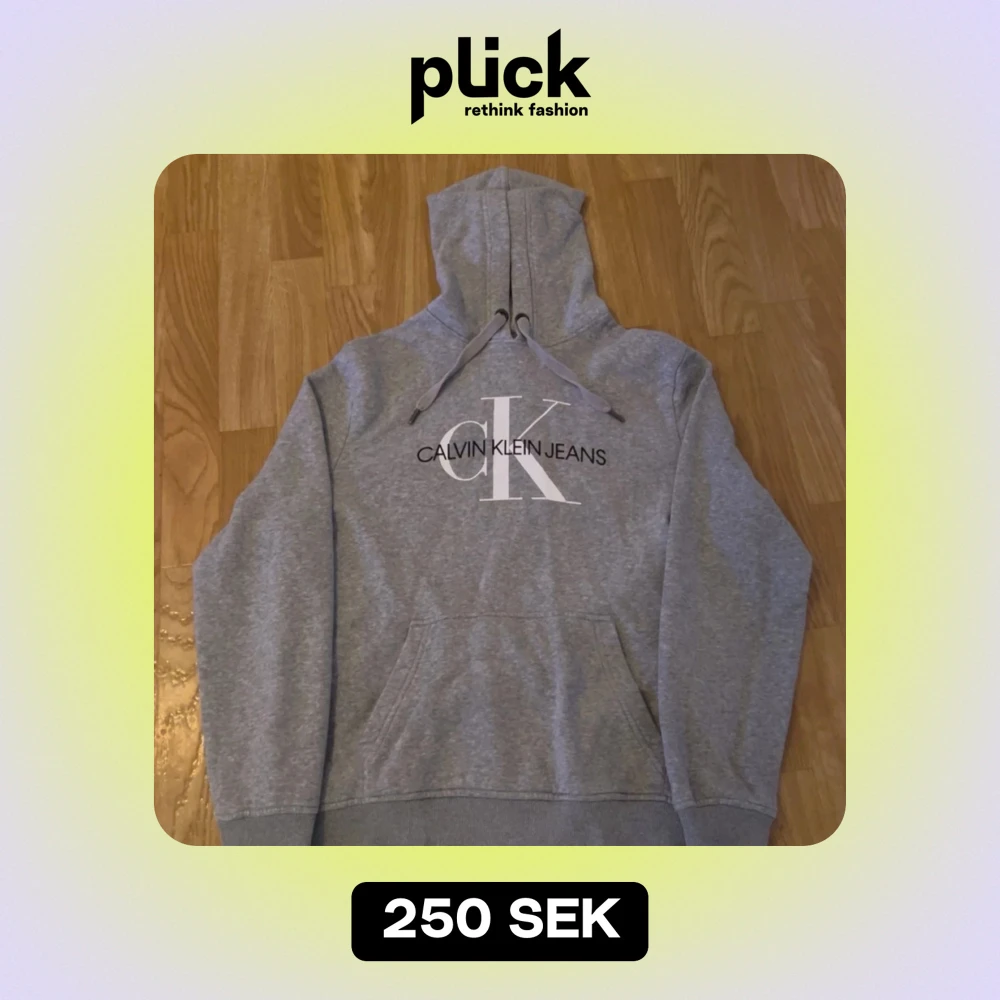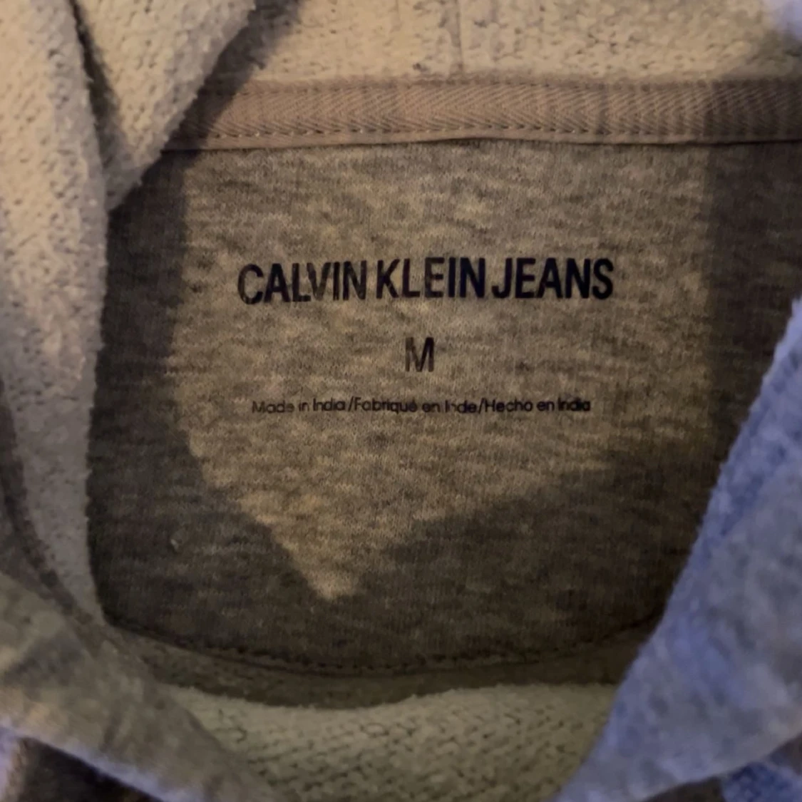 Säljer en snygg grå hoodie från Calvin Klein Jeans i storlek M. Den har en klassisk design med stor logga på framsidan och en bekväm huva med dragsko. Perfekt för en avslappnad stil och passar till alla tillfällen. Skön och stilren!