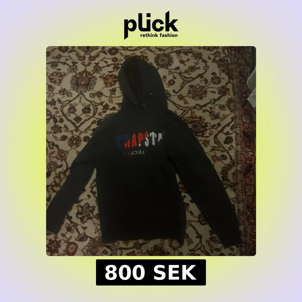 Säljer en svart hoodie från Trapstar med färgglatt tryck i blått, rött och vitt på bröstet där det står 'Trapstar It's A Secret'. Hoodien har huva med snörning och är långärmad. Perfekt för dig som gillar streetwear och vill sticka ut. Priset går att diskuteras vid snabb affär
