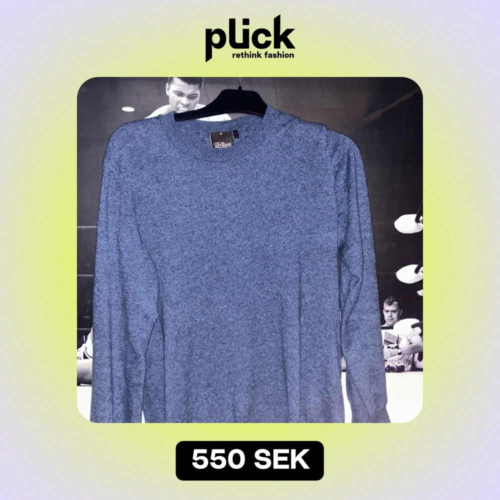 Säljer en stilren blå tröja från Oscar Jacobson i storlek M. Tröjan är tillverkad i Italien och har en klassisk design med långa ärmar. Perfekt för både vardag och lite finare tillfällen. Passar bra till höst och vinter. Tröjan är använd ett fåtal gånger, den är i princip i nyskick! —| säljer då den är för stor för mig