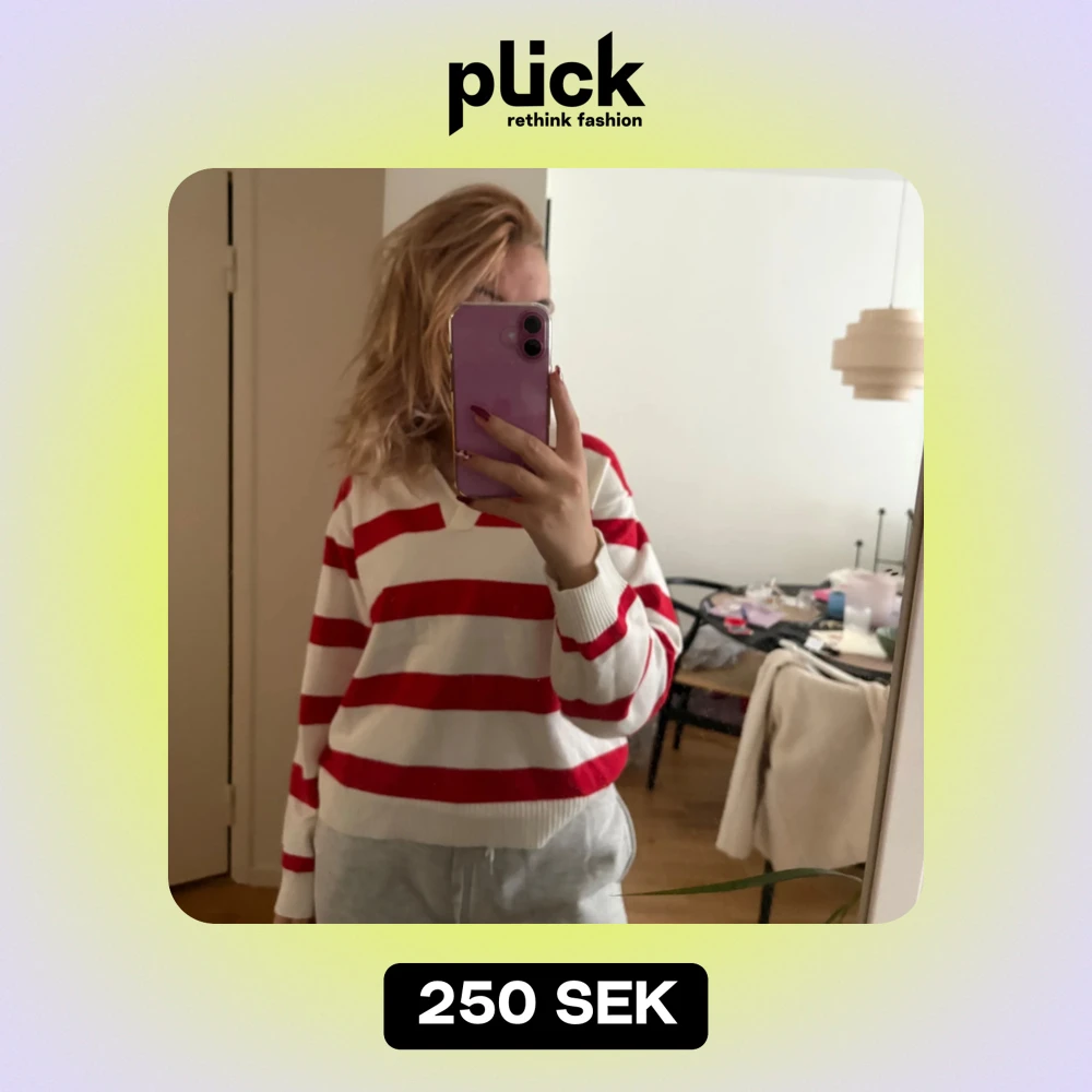 Säljer en superfin randig tröja från Parfois i rött och vitt. Den är perfekt för en avslappnad stil och har långa ärmar. Materialet känns mjukt och bekvämt, perfekt för både vår och höst. Passar bra till jeans eller mjukisbyxor för en chill look.