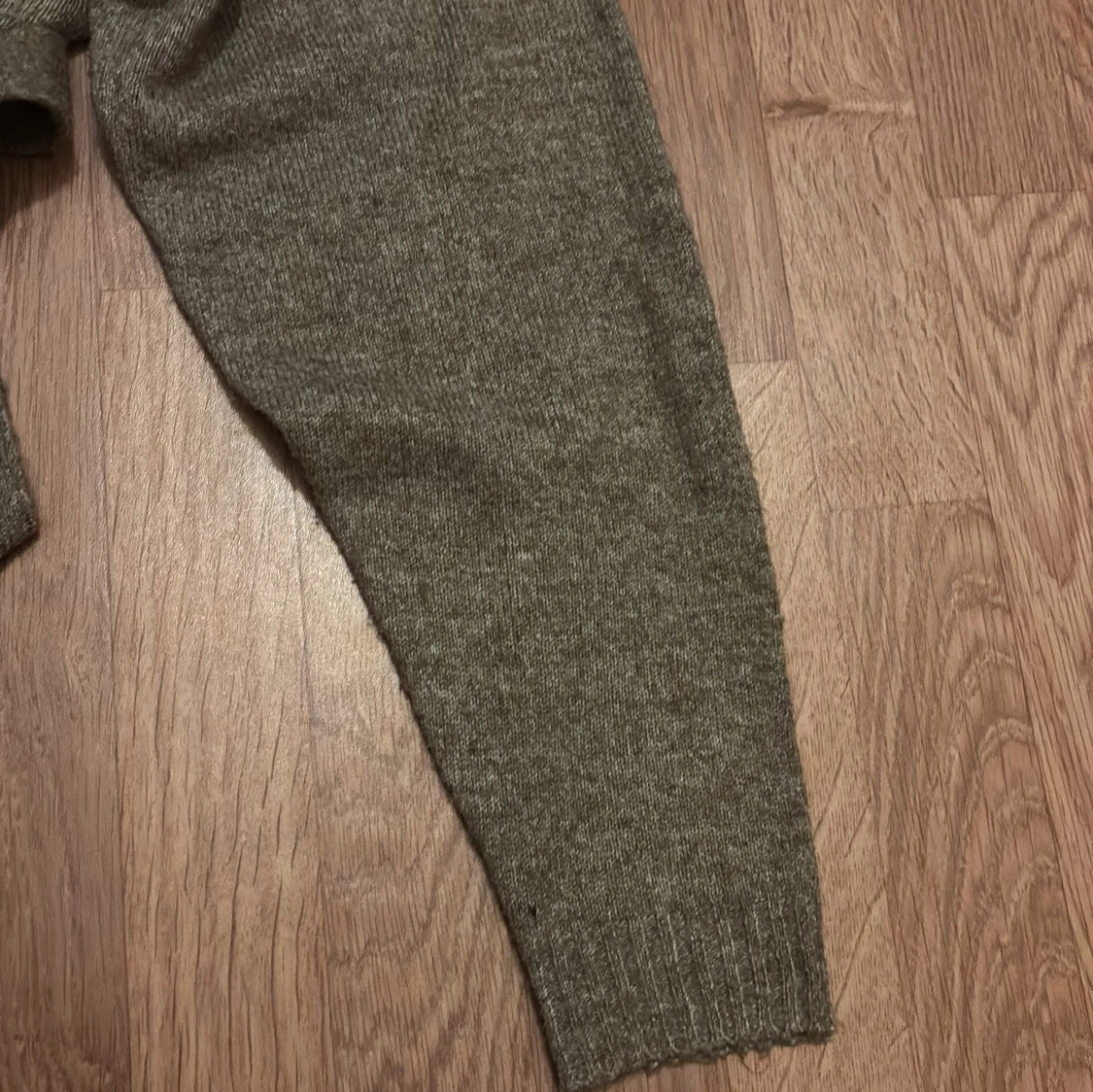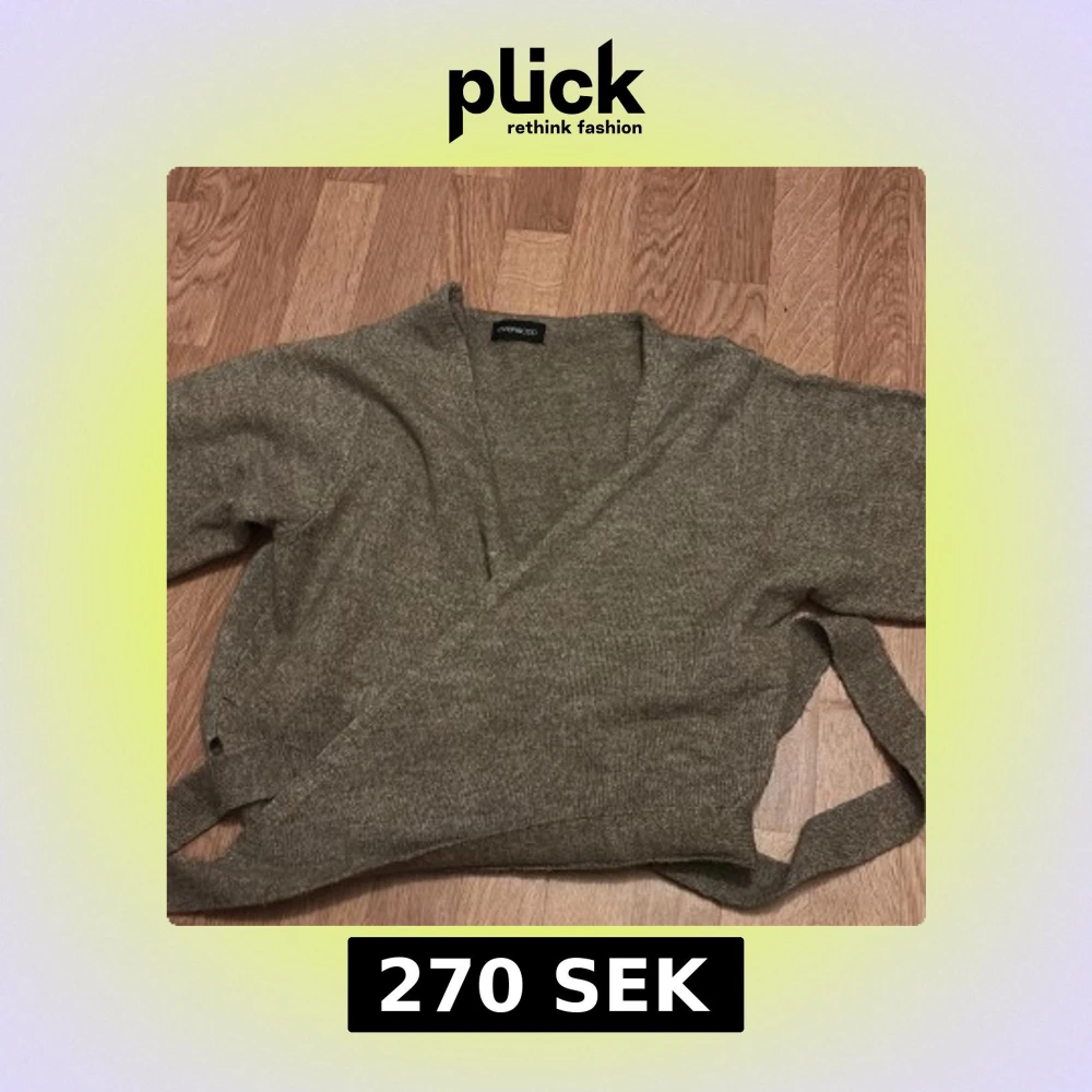 Mysig grå stickad omlottkofta från MONKI med långa ärmar och knytband i midjan. Perfekt för lager-på-lager och enkel att styla till olika outfits.