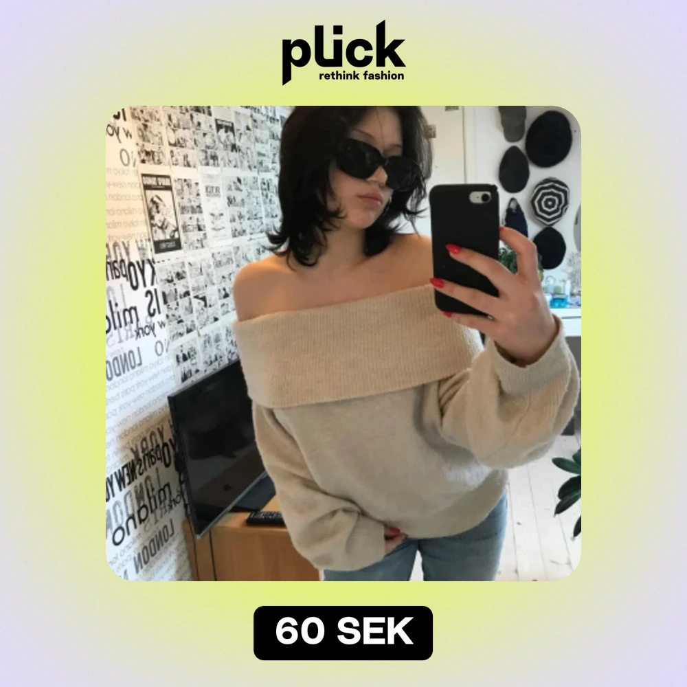 Beige off-shoulder tröja i bomullsmaterial. Skönt material, inte stickig. Passar både small och medium!🎉