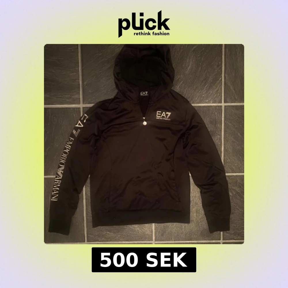 Svart EA7 hoodie med dragkedja