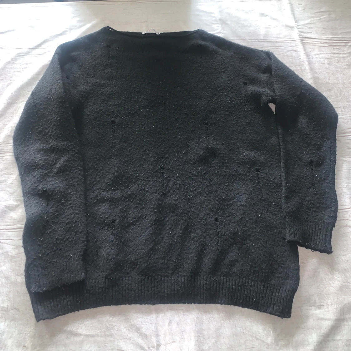 En enkel svart stickad tröja med rund hals och långa ärmar. Tröjan har en klassisk passform och ribbade muddar vid ärmslut och nederkant. Perfekt för att hålla värmen under kyliga dagar.