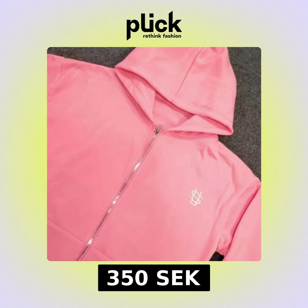 Säljer en ljusrosa hoodie med hel dragkedja och huva. Tröjan har ribbade muddar, fickor framtill och en vit logga på bröstet. Tillverkad i mjuk bomullsmix som är skön att ha på sig. Perfekt för chill dagar eller när du vill ha en poppig färg i din outfit.