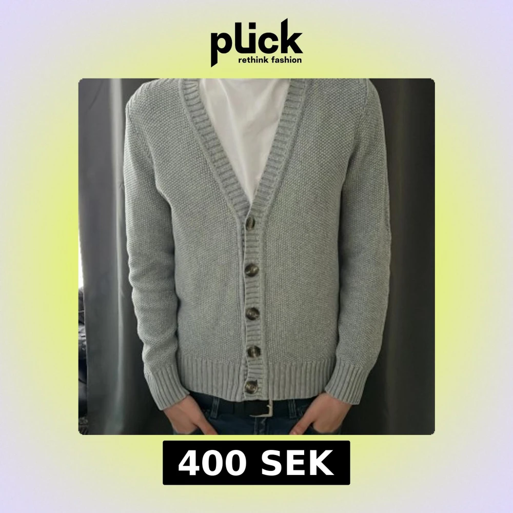 Nu säljer vi en ljusgrå stickad kofta med brun/beaga knappar framtill. Koftan har lång ärm, djup v-ringning och bred ribbad kant vid ärmslut och nederkant. Perfekt för lager-på-lager och enkel att matcha med olika outfits.