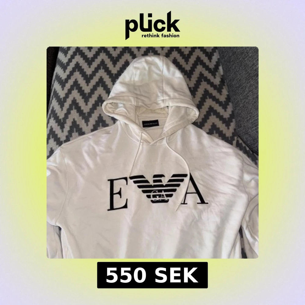 Snygg vit hoodie från Emporio Armani med stor svart EA-logga framtill. Tröjan har huva med snörning och är tillverkad i mjuk bomull. Perfekt för en clean och stilren look, passar dig som gillar exklusiva streetwear-vibbar.