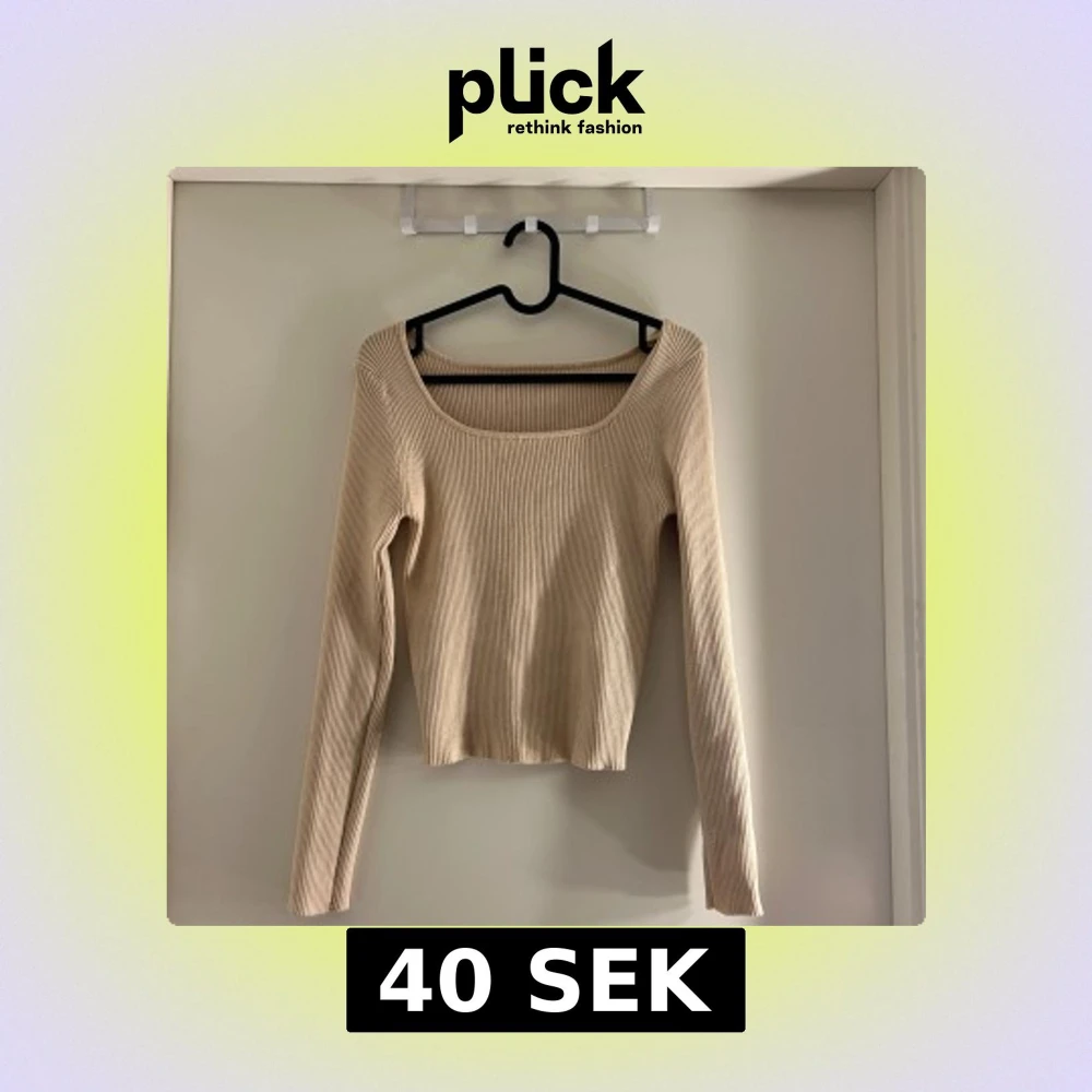 Säljer en stilren beige ribbad tröja med långärmad design. Perfekt för lager-på-lager eller som den är. Den har en elegant fyrkantig halsringning som ger en modern touch.