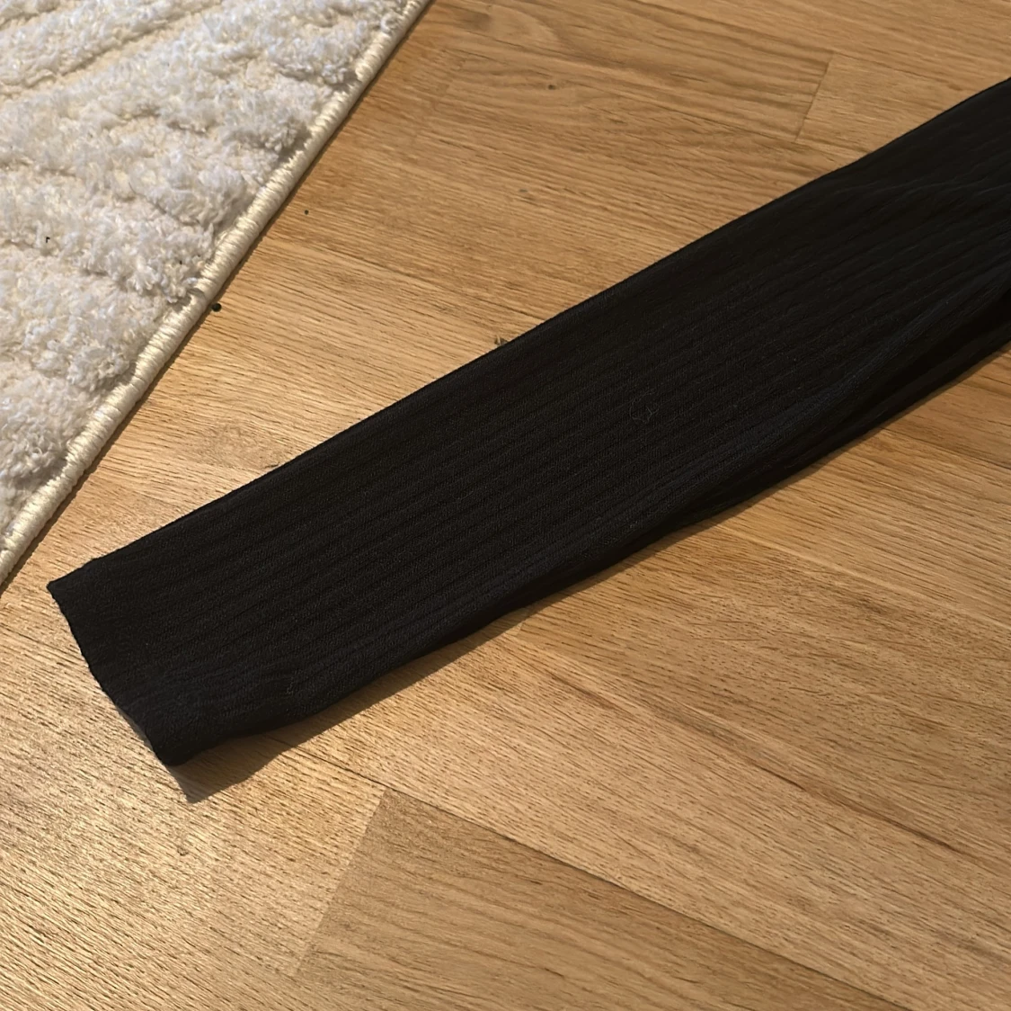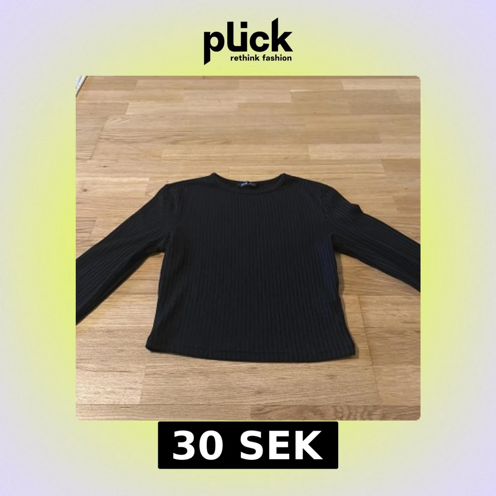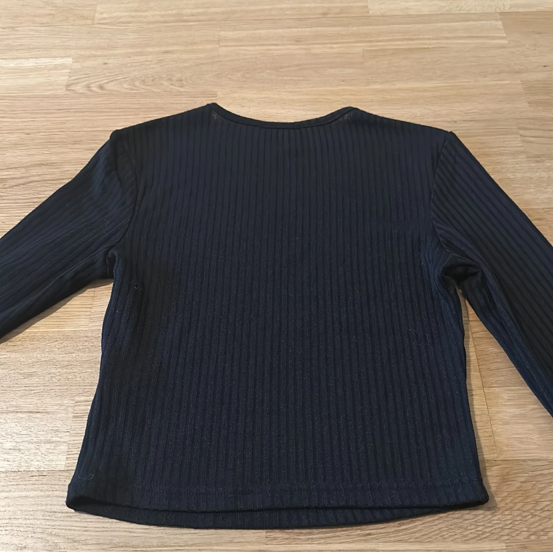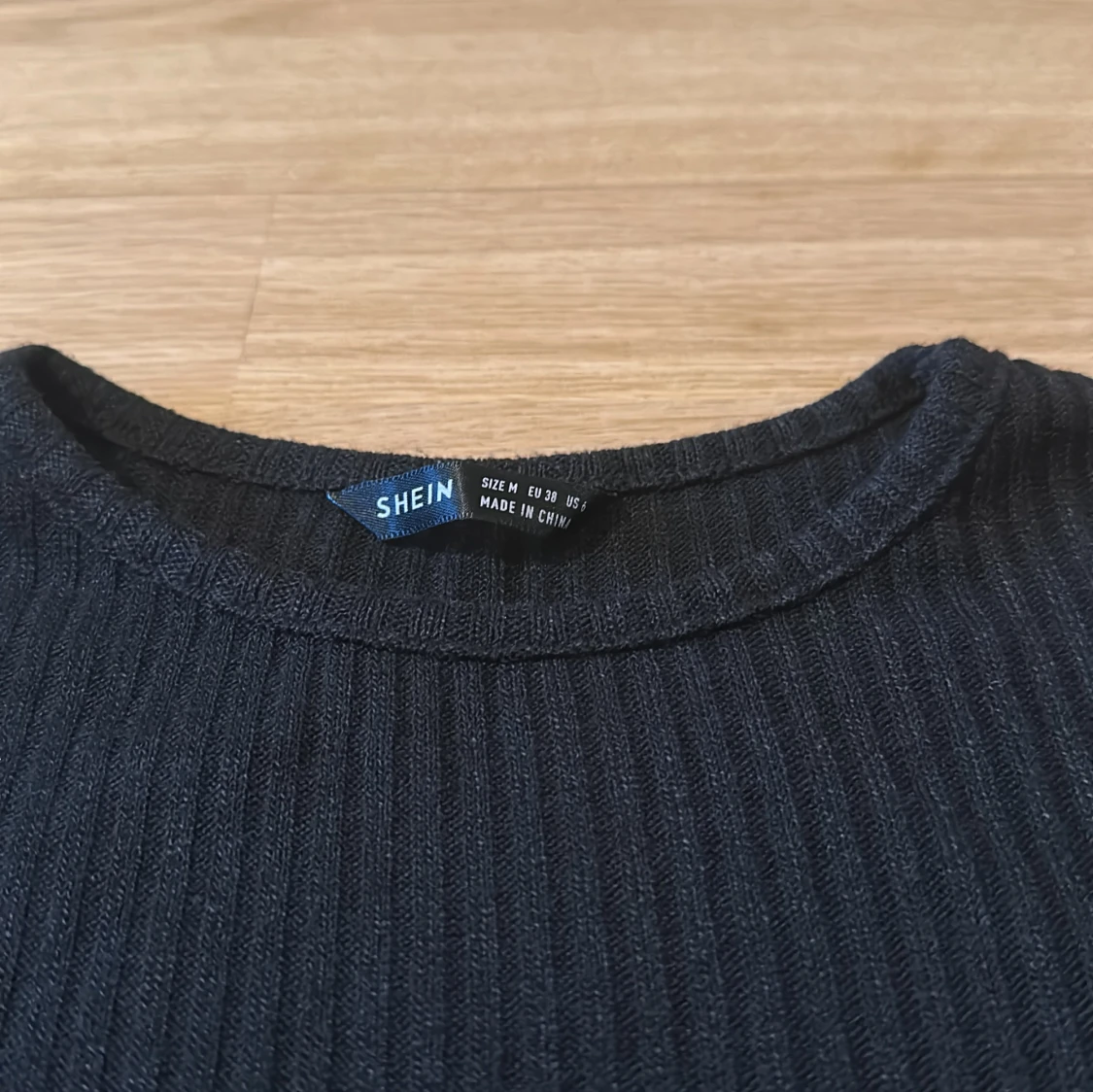 En svart långärmad tröja från SHEIN i storlek M. Tröjan är ribbad med rund halsringning och har en enkel, stilren design som är lätt att matcha. Perfekt för lager-på-lager och funkar året runt.