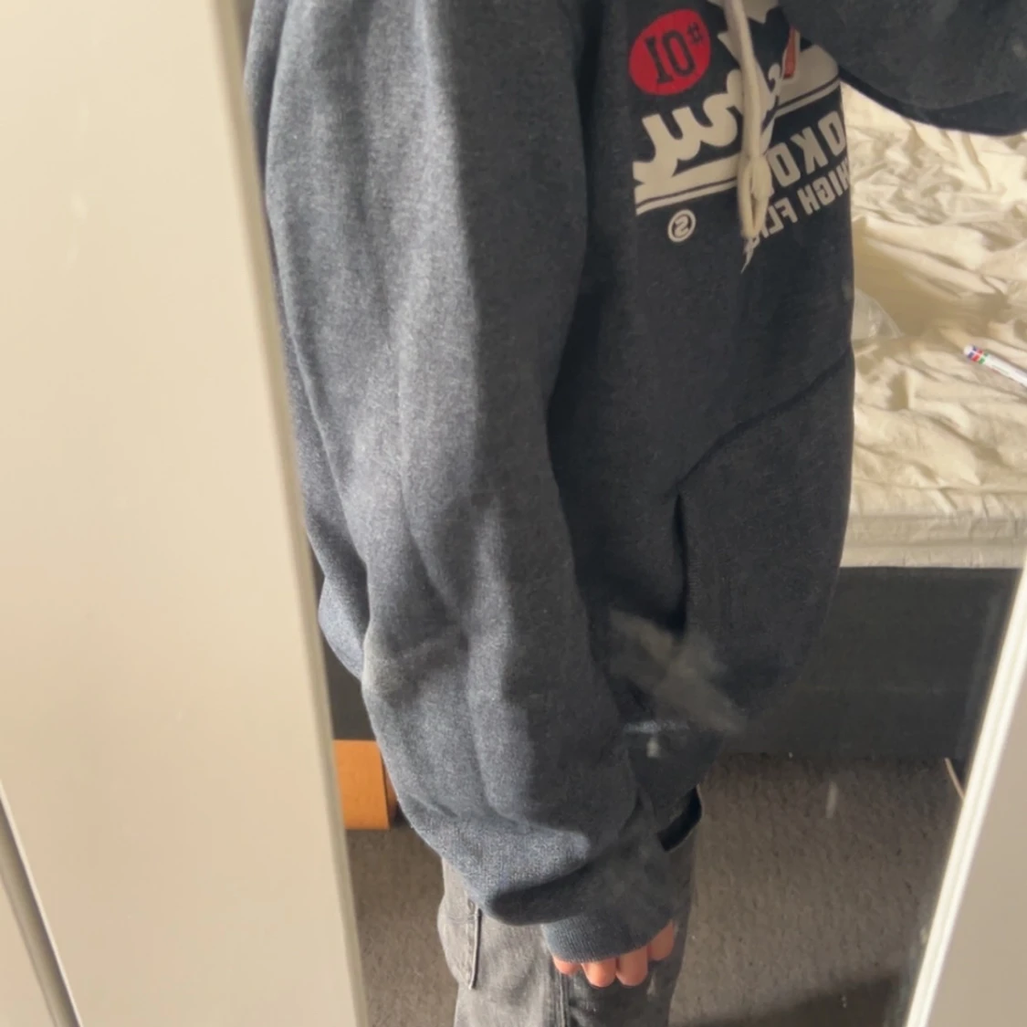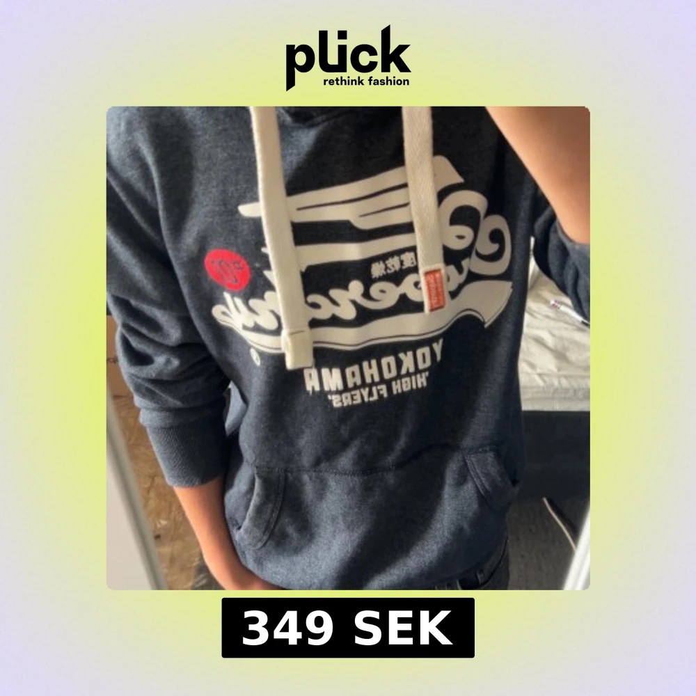 Mörkblå hoodie med tryck Yokohama
