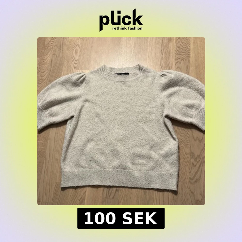 Superfin ljusgrå stickad tröja med puffiga ärmar och ribbade muddar. Tröjan har en klassisk rund halsringning och är perfekt för dig som gillar en enkel men trendig look. Passar snyggt till både jeans och kjol.