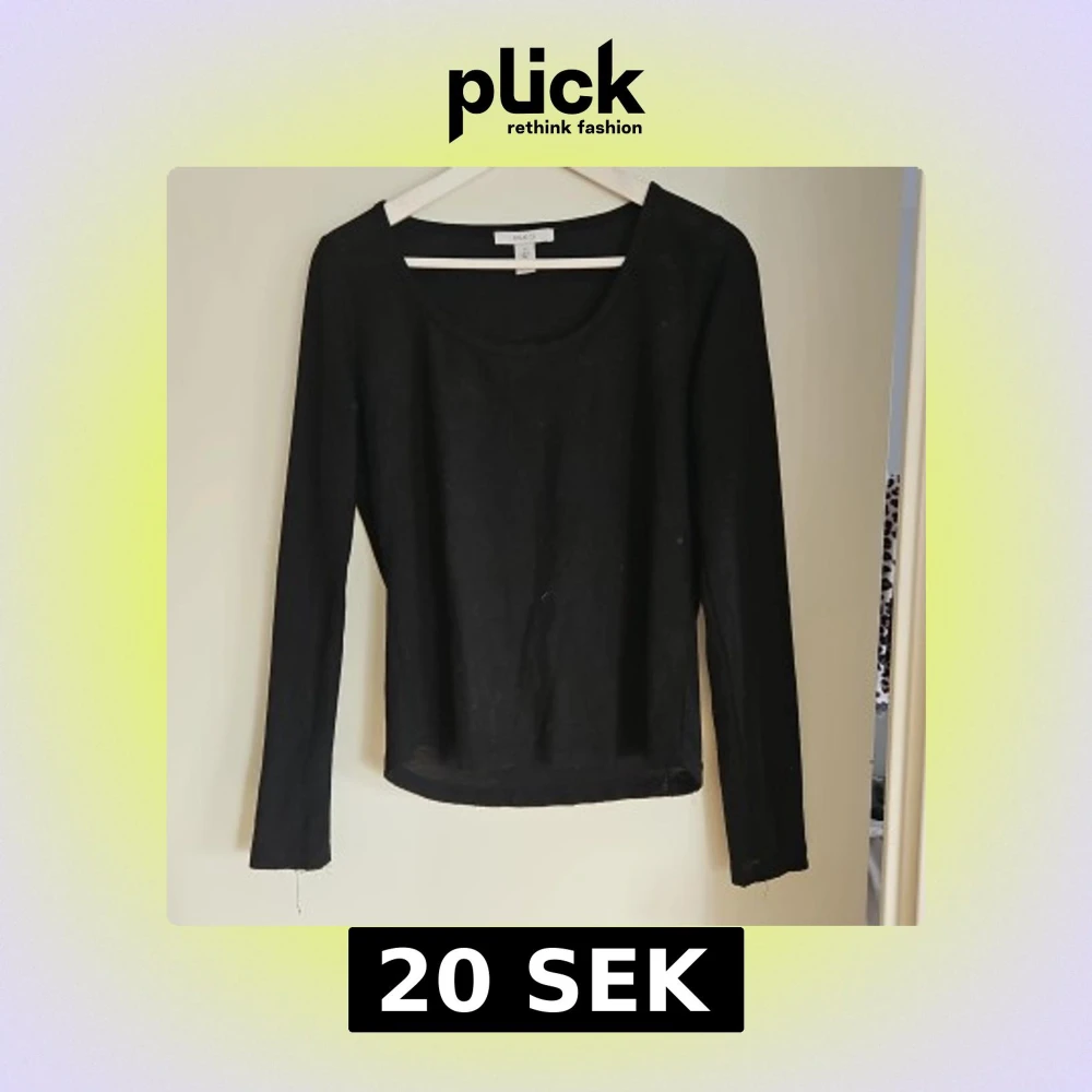 Säljer en stilren svart långärmad topp. Perfekt basplagg med rund halsringning och mjukt material. Passar till många olika outfits och tillfällen.