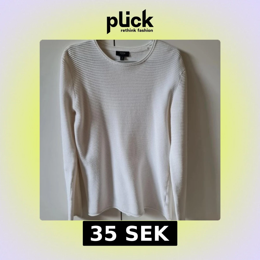 Vit långärmad tröja från SMOG (New Yorker) i slim fit-modell. Tröjan har ett ribbat, horisontellt mönster. Material bomull och polyester. Storlek M.