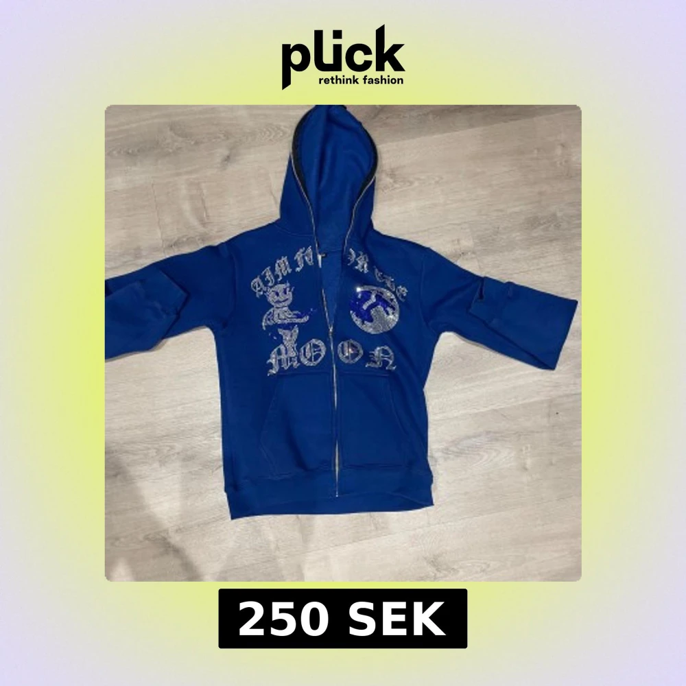 Snygg och varm hoodie från ”aim for the moon”. Sitter riktigt skönt och passar med det mesta. Nästan alla stenar sitter kvar, finns någon liten fläck men ingenting som syns.