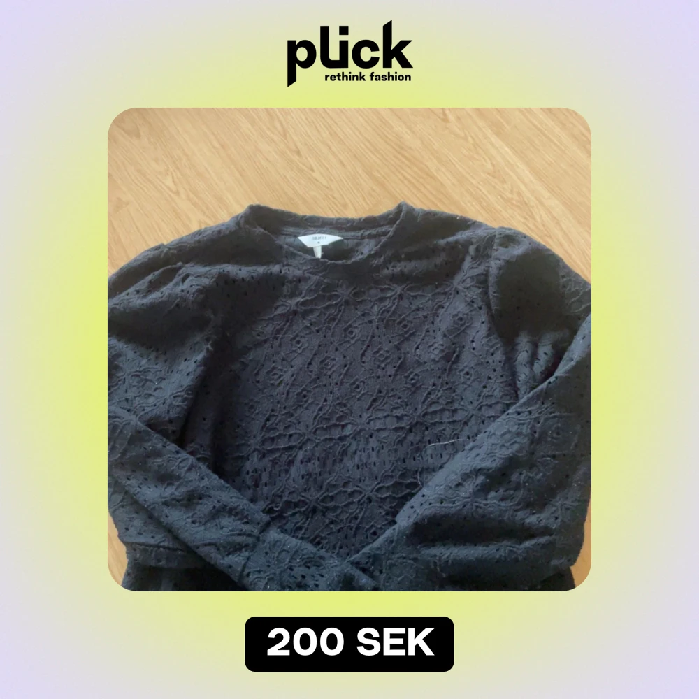 Säljer en elegant svart spetsblus från Object i storlek M. Blusen har långa ärmar och ett vackert spetsmönster. Den har även lite puffiga armar.