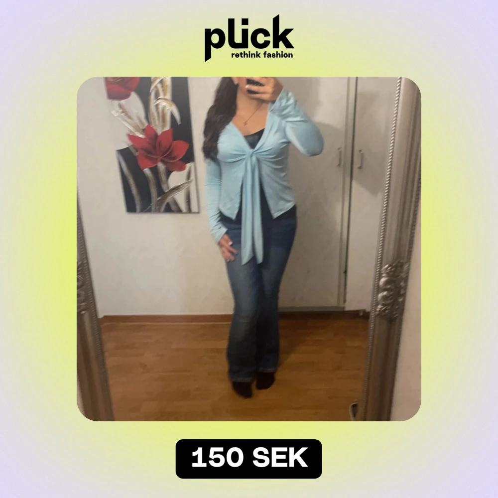 Säljer en superfin ljusblå tröja med knytning framtill. Den har långa ärmar och är perfekt för både vår och sommar. Tröjan är i bra skick och passar perfekt till jeans för en avslappnad look. Perfekt för en dag ute eller en mysig fika med vänner! 💙