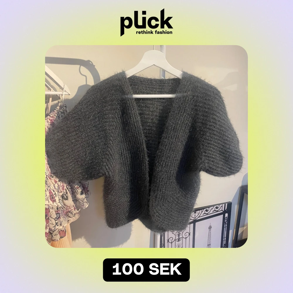 Säljer en supermysig grå stickad kofta i fluffigt material. Står ej stolek men skulle säga M