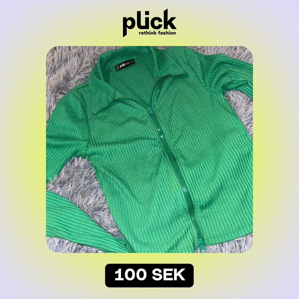 Grön ribbad tröja med dragkedja