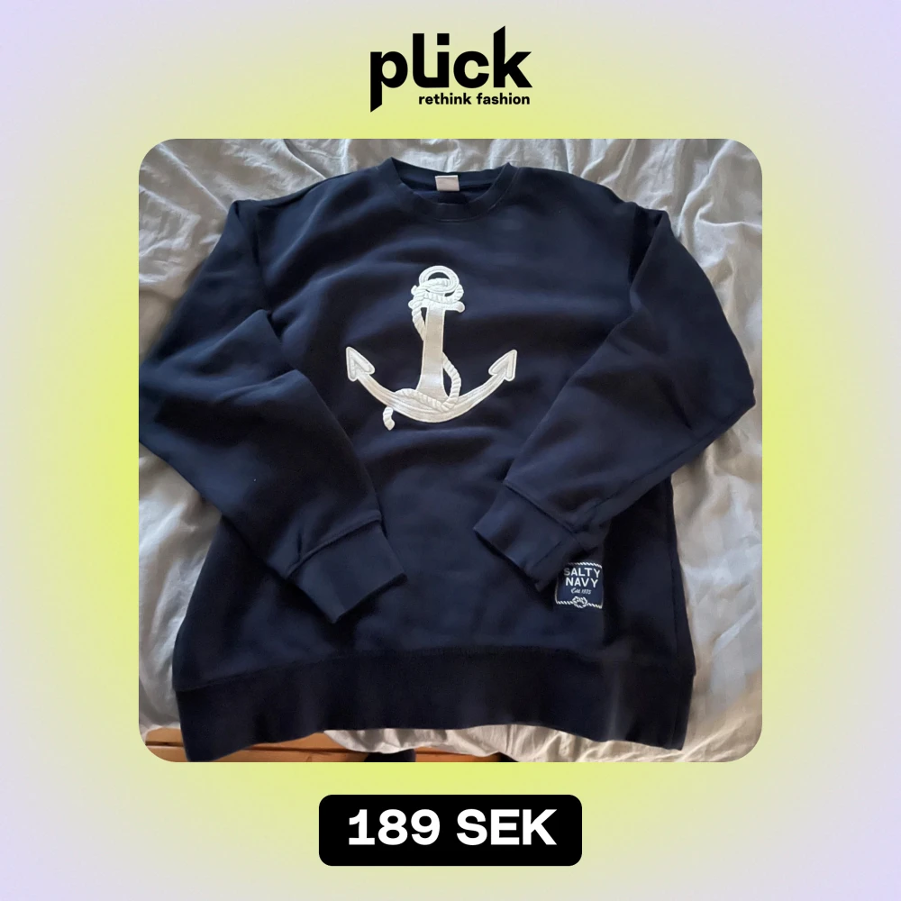 Säljer en snygg mörkblå sweatshirt från Zara med ett stort vitt ankare på framsidan. Tröjan har långa ärmar och en bekväm passform, perfekt för både höst och vår. Den är i mycket bra skick och redo för nya äventyr! 🌊⚓