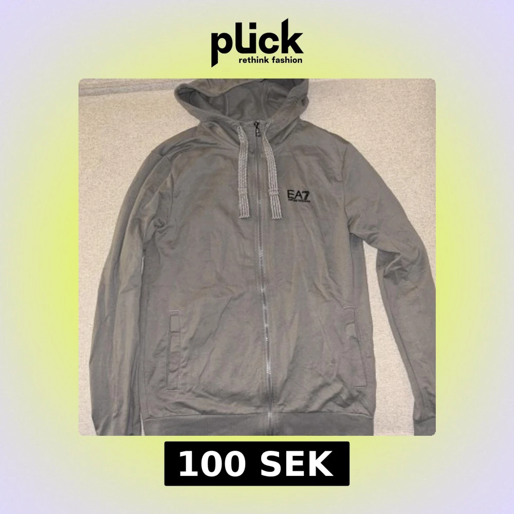 Snygg grå hoodie från EA7 Emporio Armani med dragkedja och huva med breda snören. Tröjan har två fickor framtill och diskret logga på bröstet. Materialet är mjuk bomull och passformen är normal. Perfekt för chill eller streetwear.