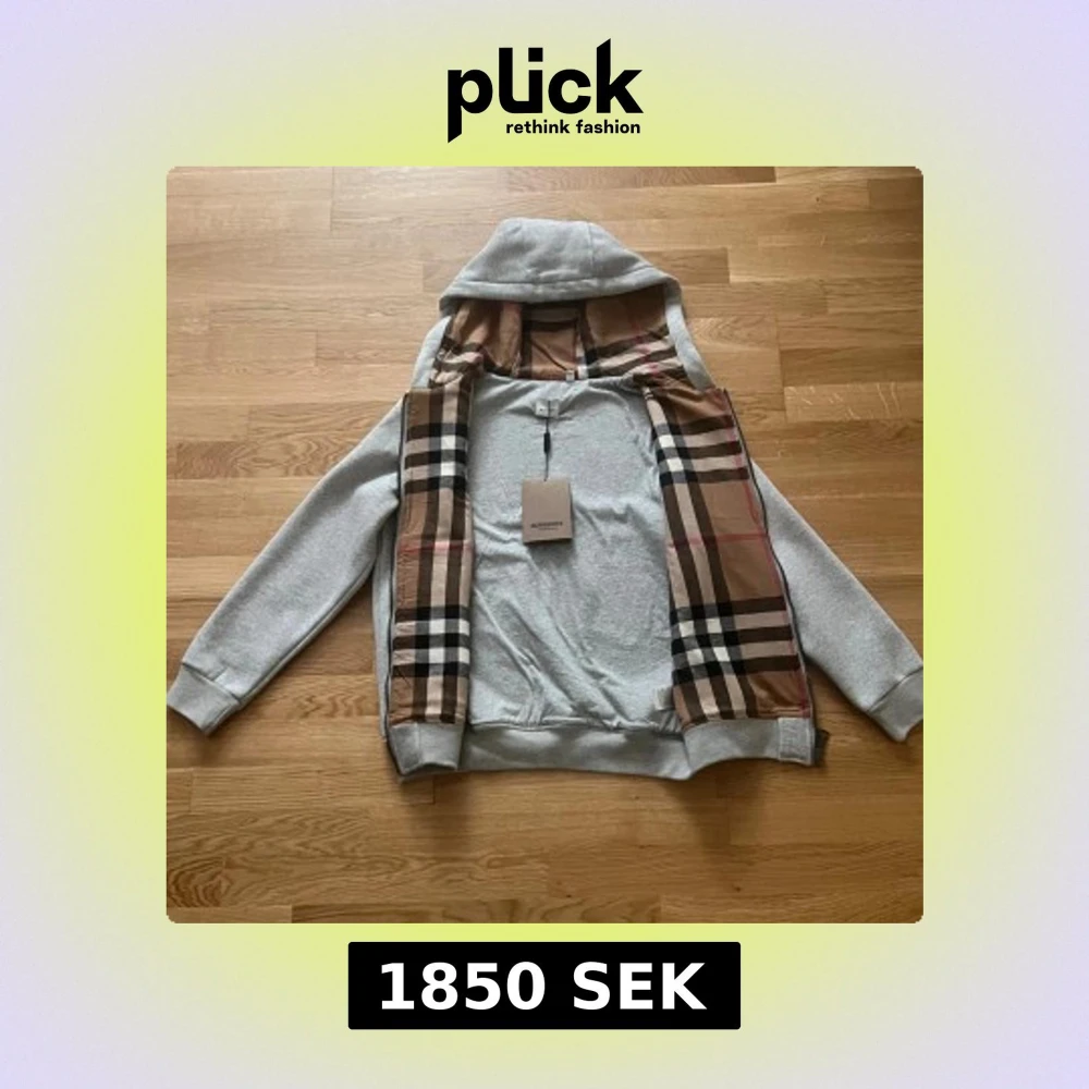 Säljer en grå kofta med klassiskt rutigt foder i huvan. Tröjan har dragkedja framtill, snörning i huvan och känguruficka. Tillverkad i mjuk bomull med en liten andel elastan för extra komfort. Perfekt för dig som gillar stilren design med lyxig touch.