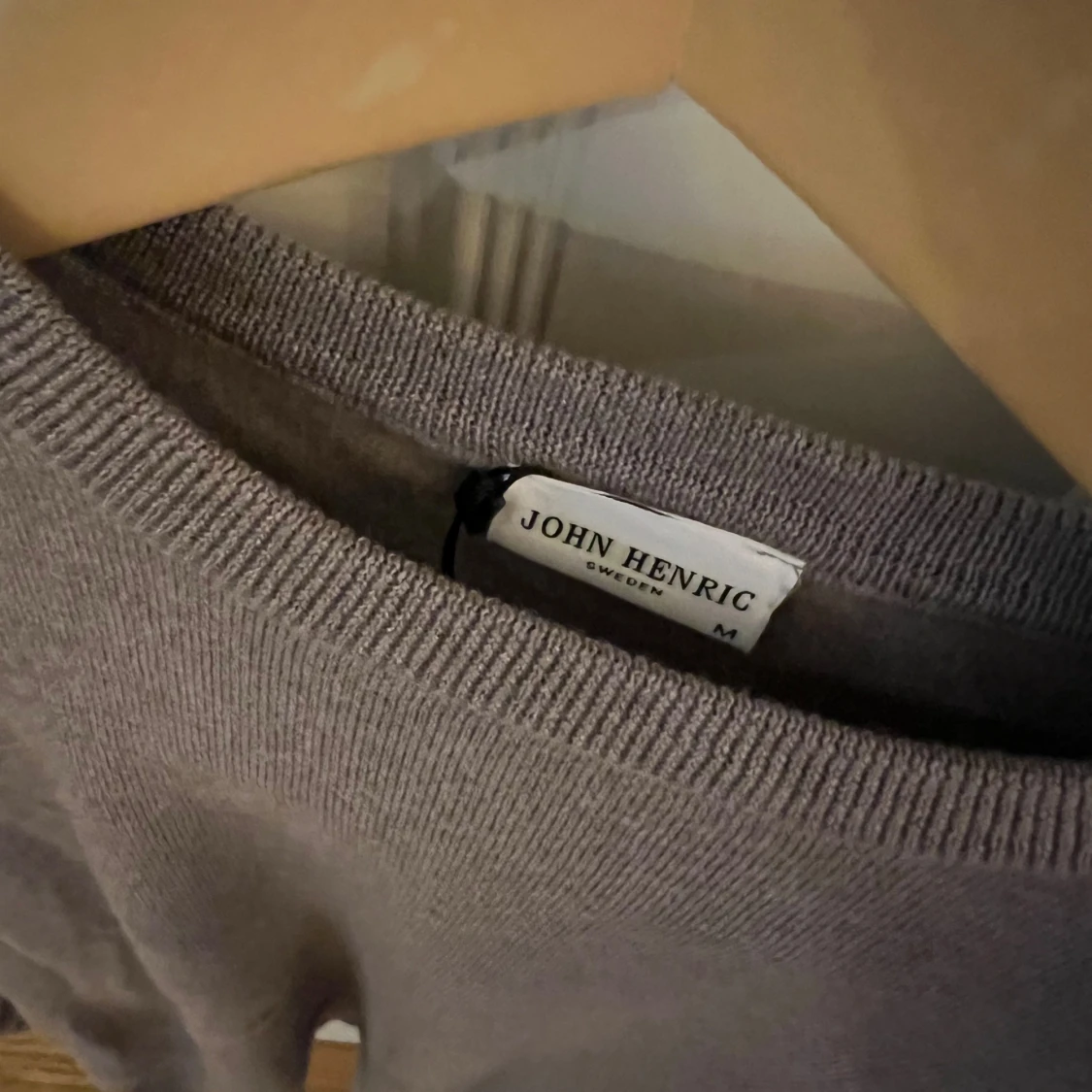 Snygg beige stickad tröja från John Henric i storlek M. Tröjan har en klassisk rund hals och långa ärmar, perfekt för lager på lager. Materialet är mjukt och skönt, och färgen är neutral vilket gör den enkel att matcha med andra plagg. Passar M/S