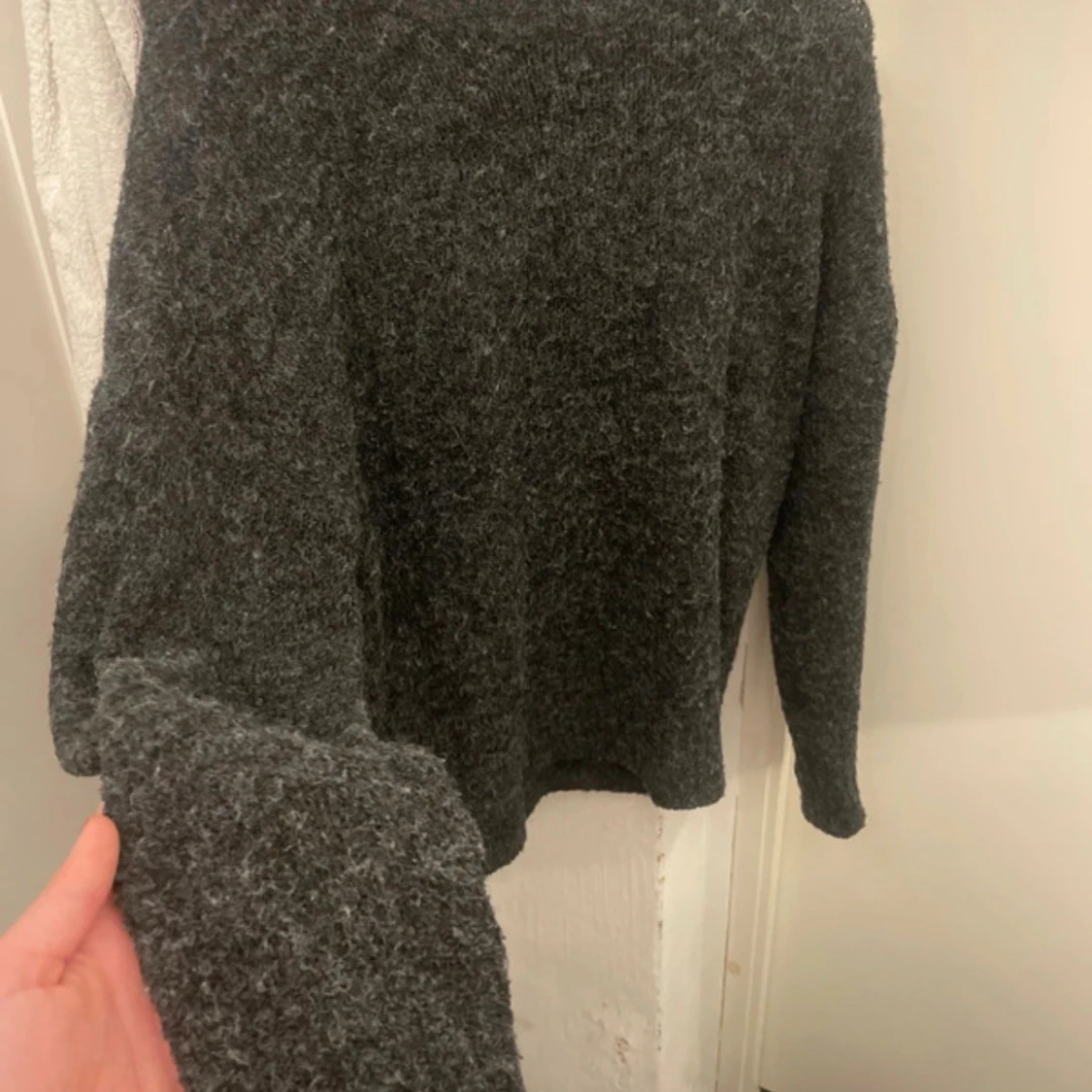 Mysig mörkgrå stickad tröja med lång ärm och enkel design. Perfekt för kyliga dagar och passar till det mesta. Tröjan har en klassisk passform och är gjord i ett mjukt, fluffigt material som känns skönt mot huden.