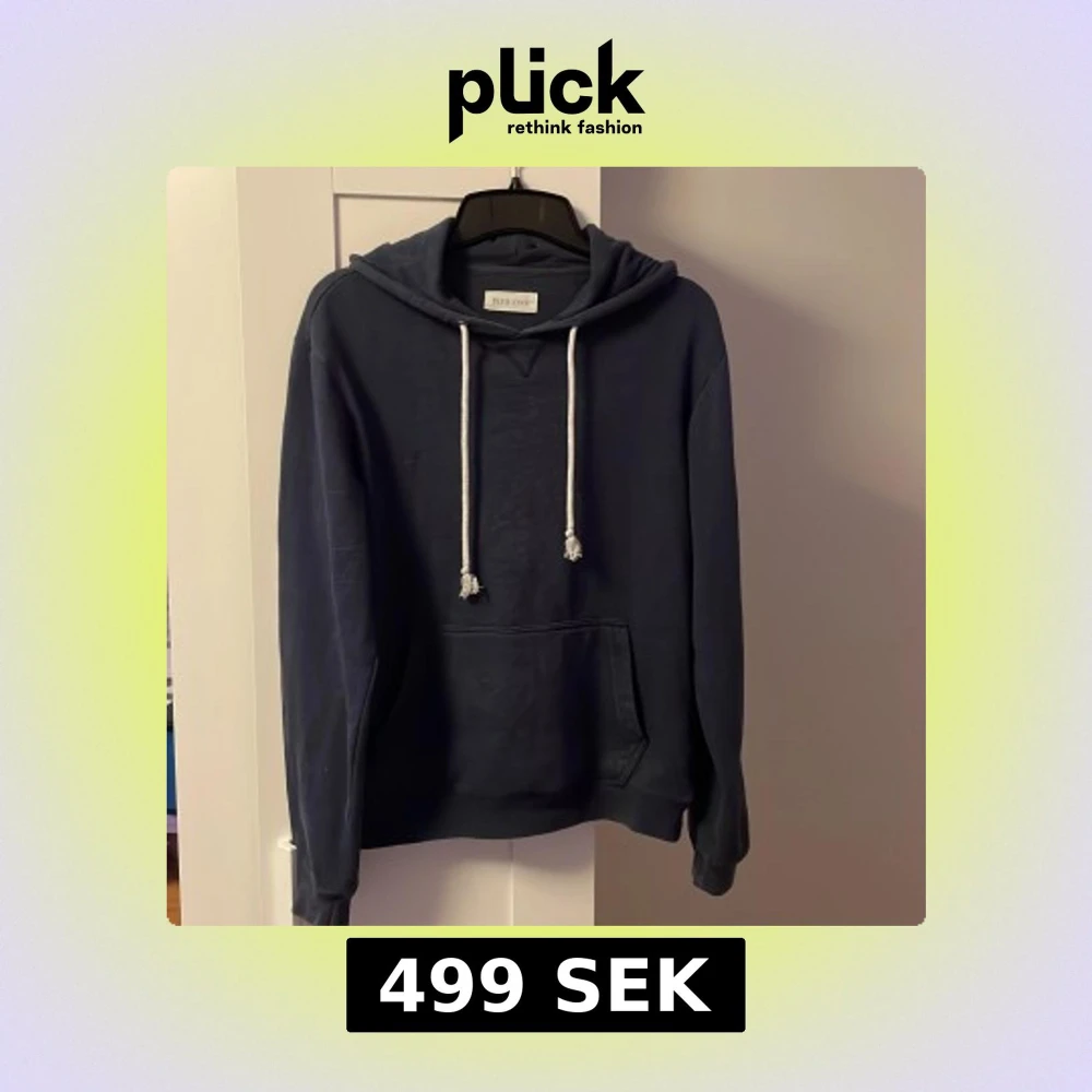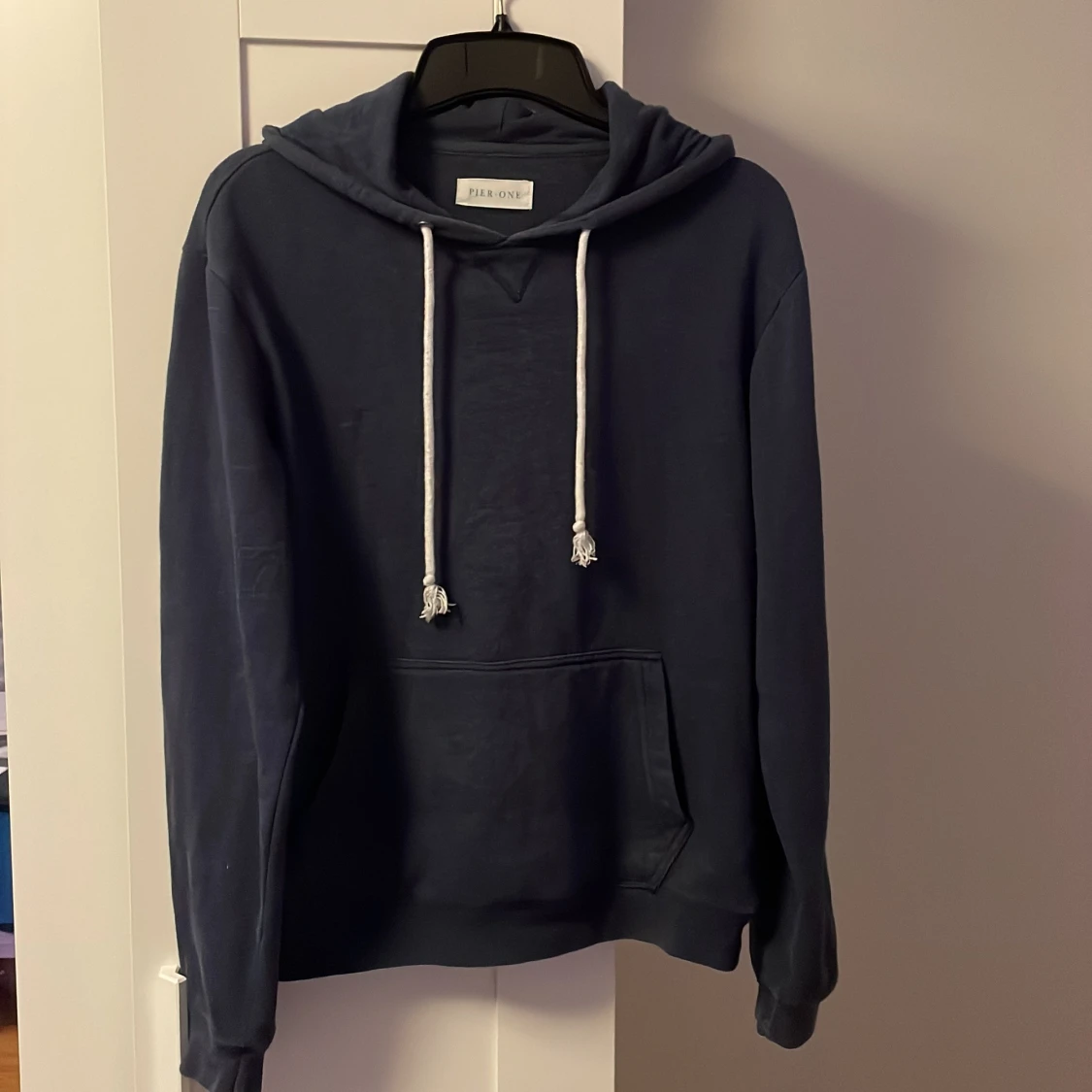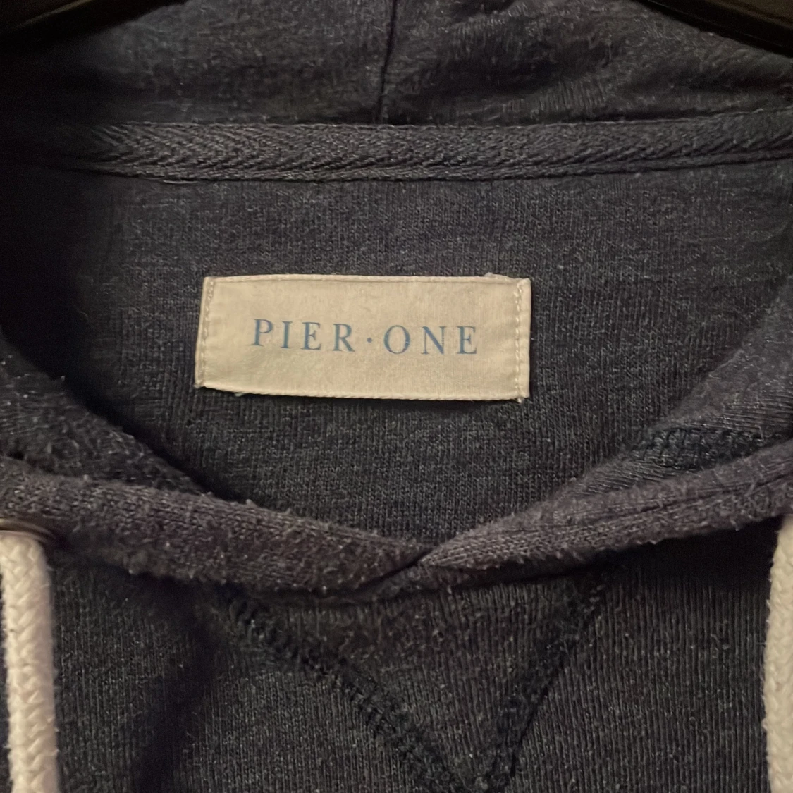 Tja säljer nu en mörkblå hoodie från Pier One med vit snörning. Tröjan har huva och långa ärmar, perfekt för kyliga dagar. Enkel och stilren design som funkar till det mesta.